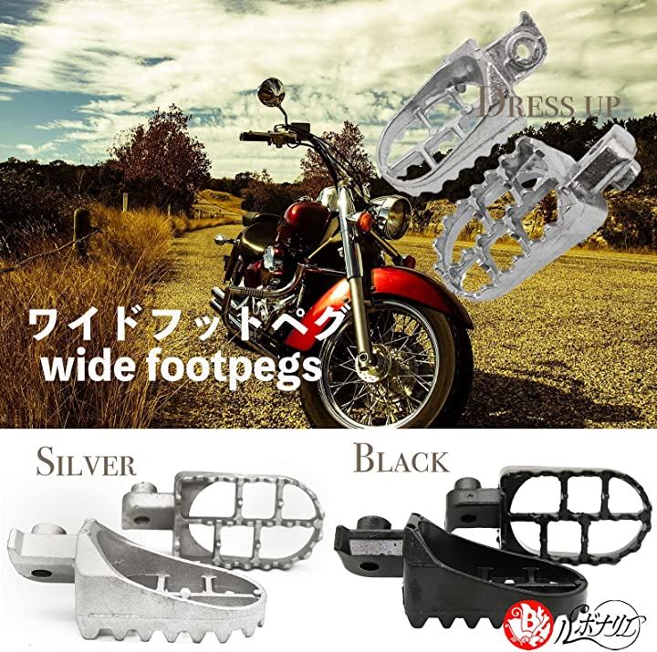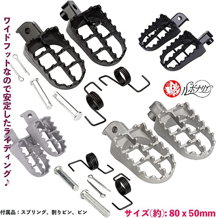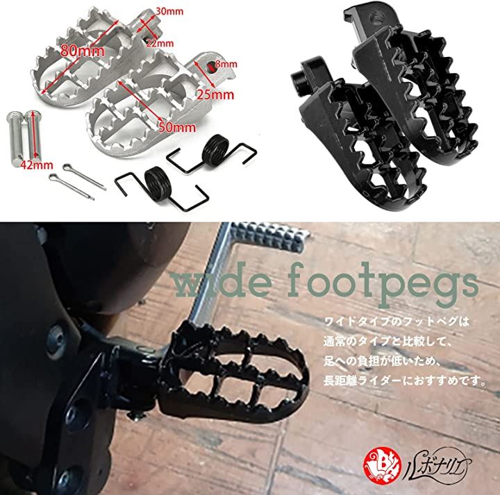 互換品 バイク用ワイドフットペグ フットレスト 左右セット バイクペダル オフロードバイク