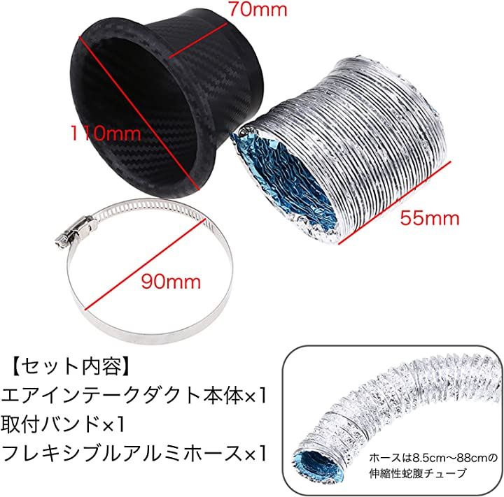 互換品モデルノ ラ テール エアインテークダクト 汎用 エアクリーナー ダクトホース 吸気 排気パーツ ドライカーボン YM-192-N1