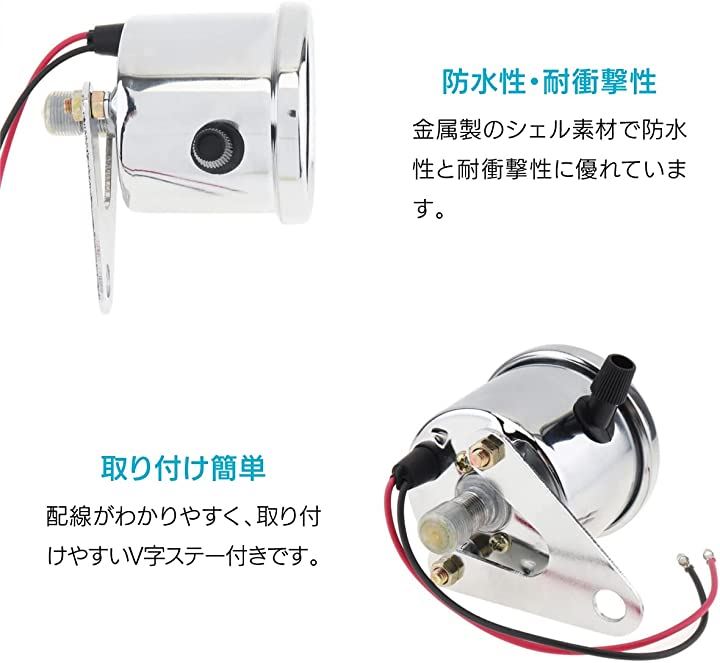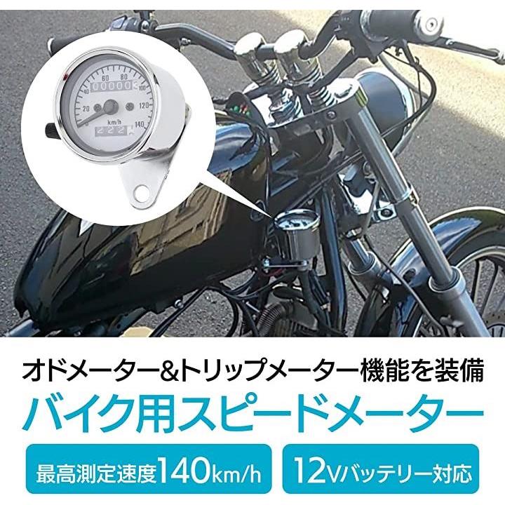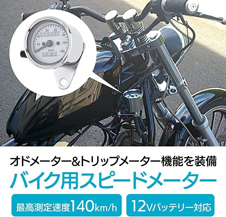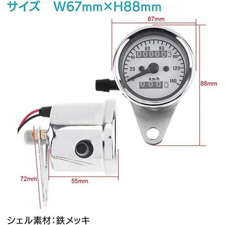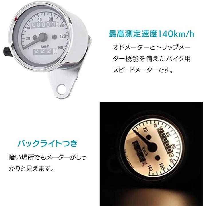 互換品 スピードメーター バイク用 機械式 12V 140km/h 汎用 最大速度表示 照明