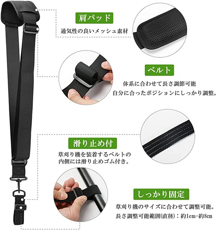 互換品 草刈機 肩掛けベルト 草刈機用 肩掛けバンド 調整可能 ショルダー ストラップ ハーネス 汎用 斜め掛け
