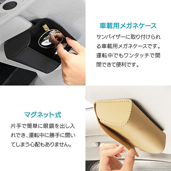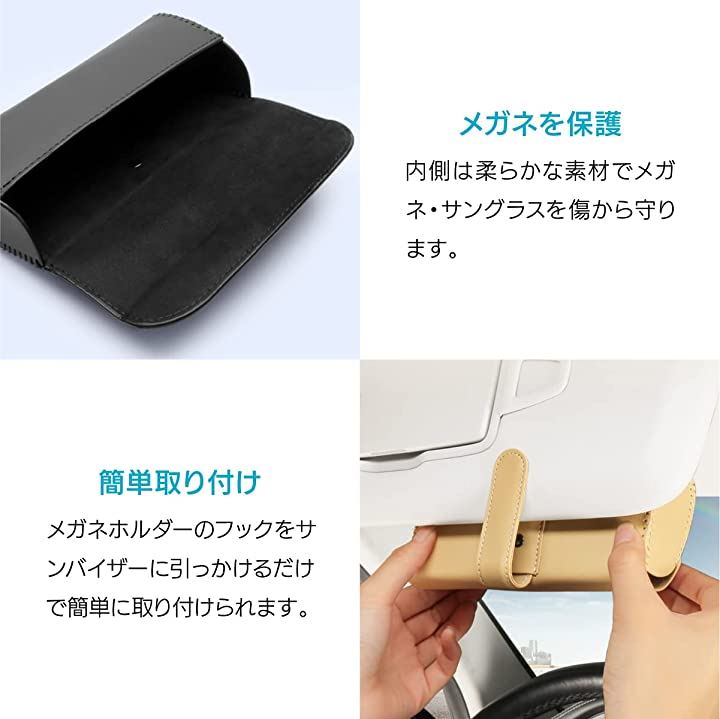 互換品 車用メガネホルダー サングラス収納ケース PU 汎用 車載 サンバイザー 取付簡単 シンプル