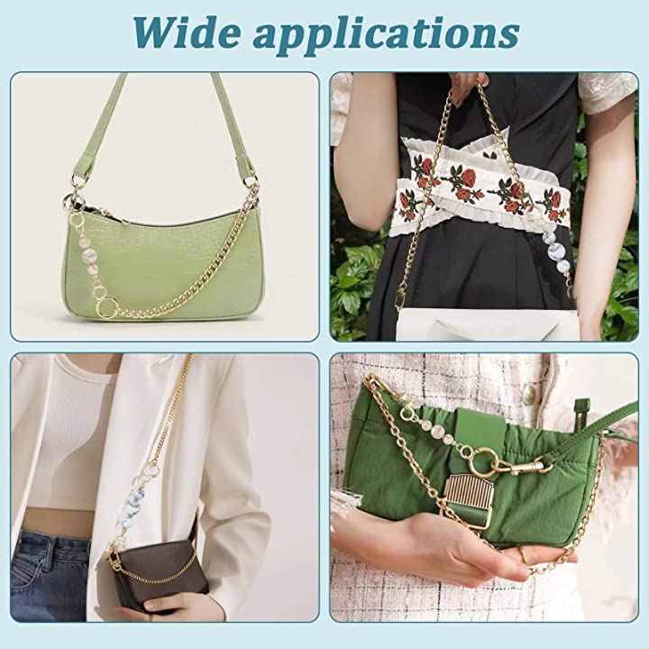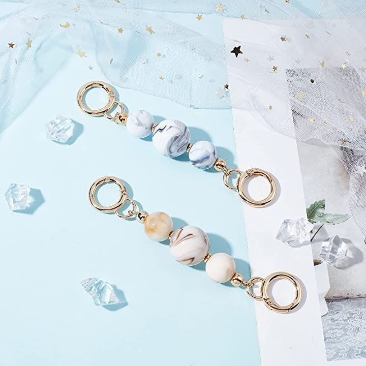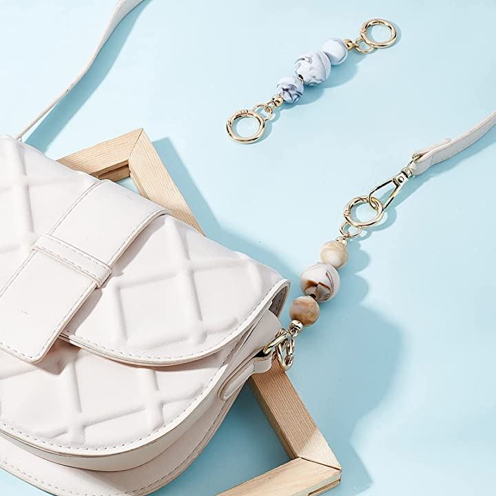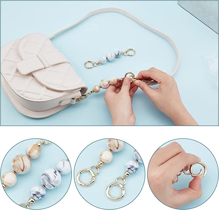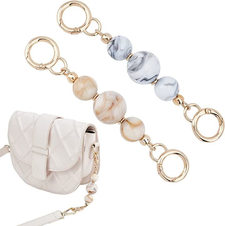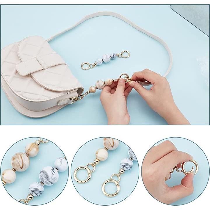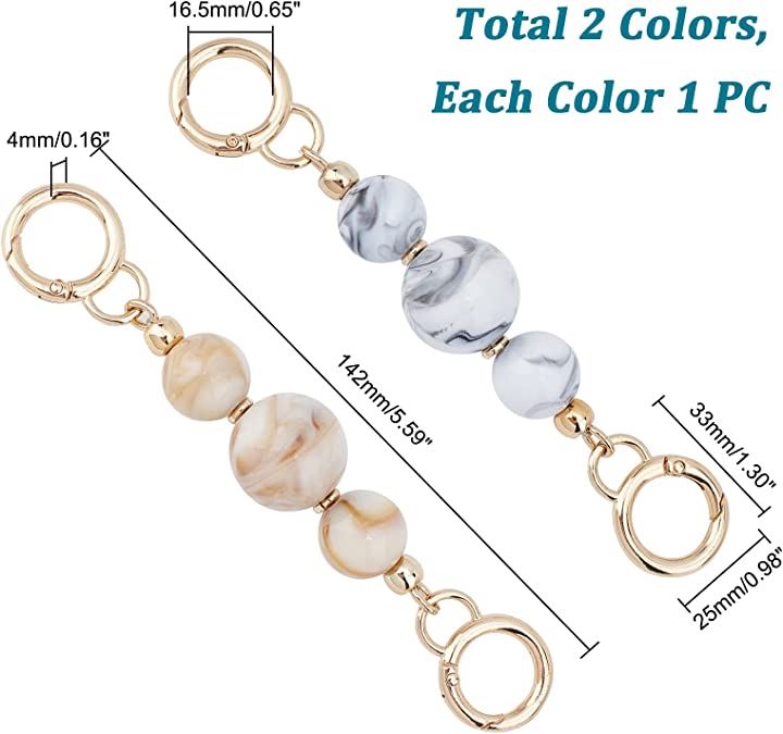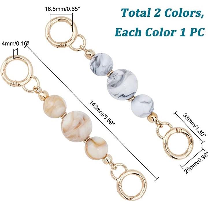 2本 パールストラップ 取っ手 ショートビーズチェーン 樹脂 ポーチ バッグ 延長チェーン バッグ用 長14.2cm