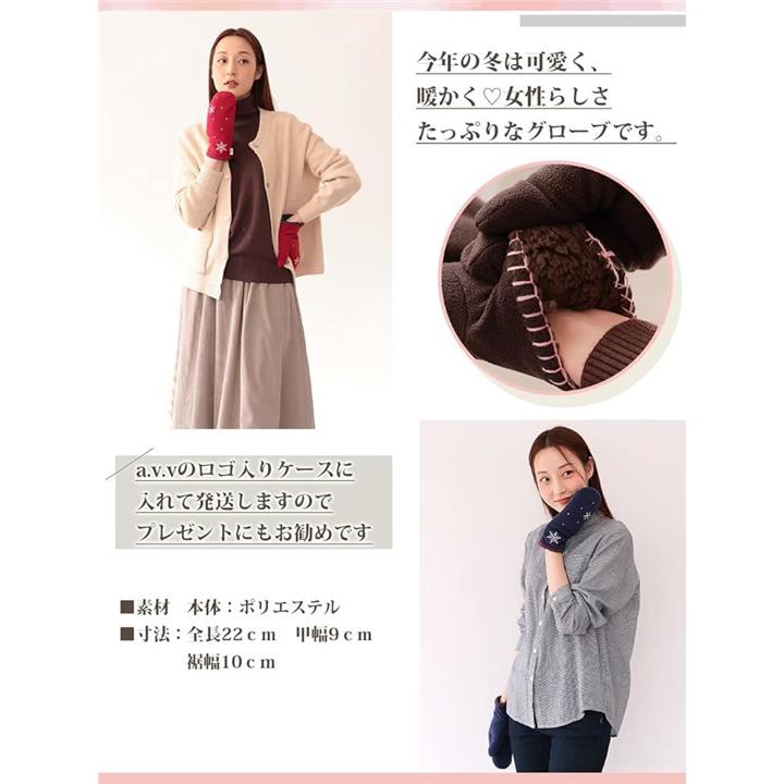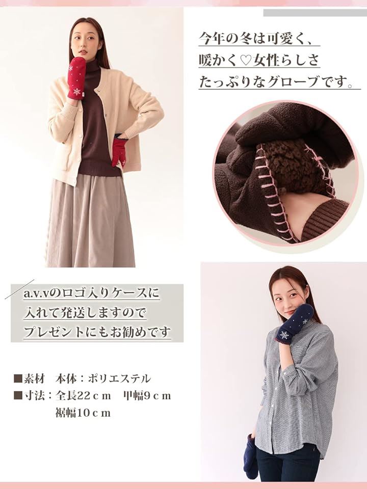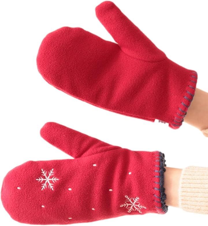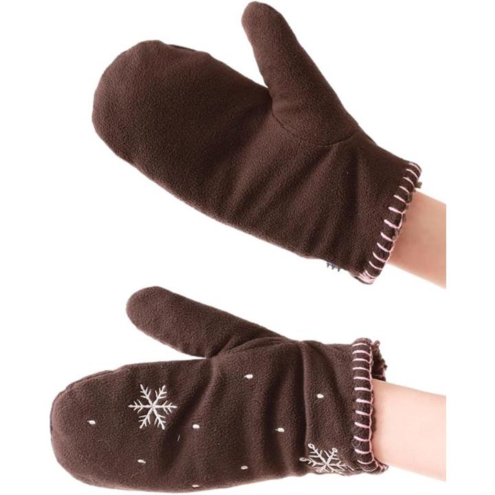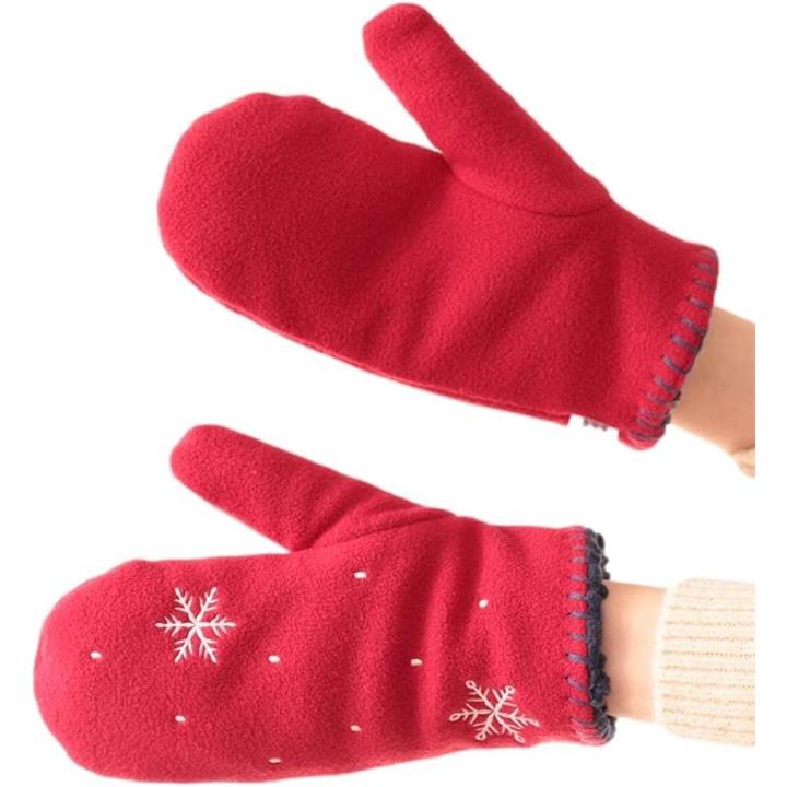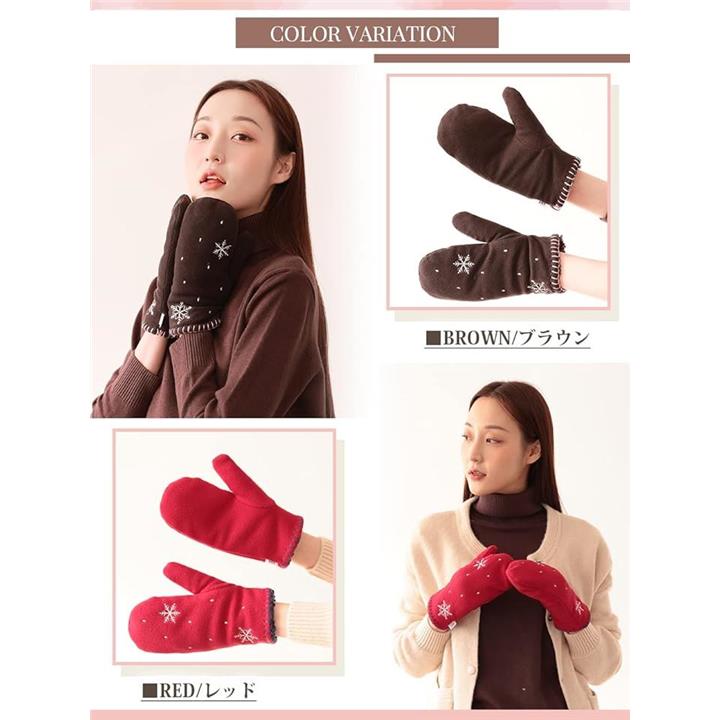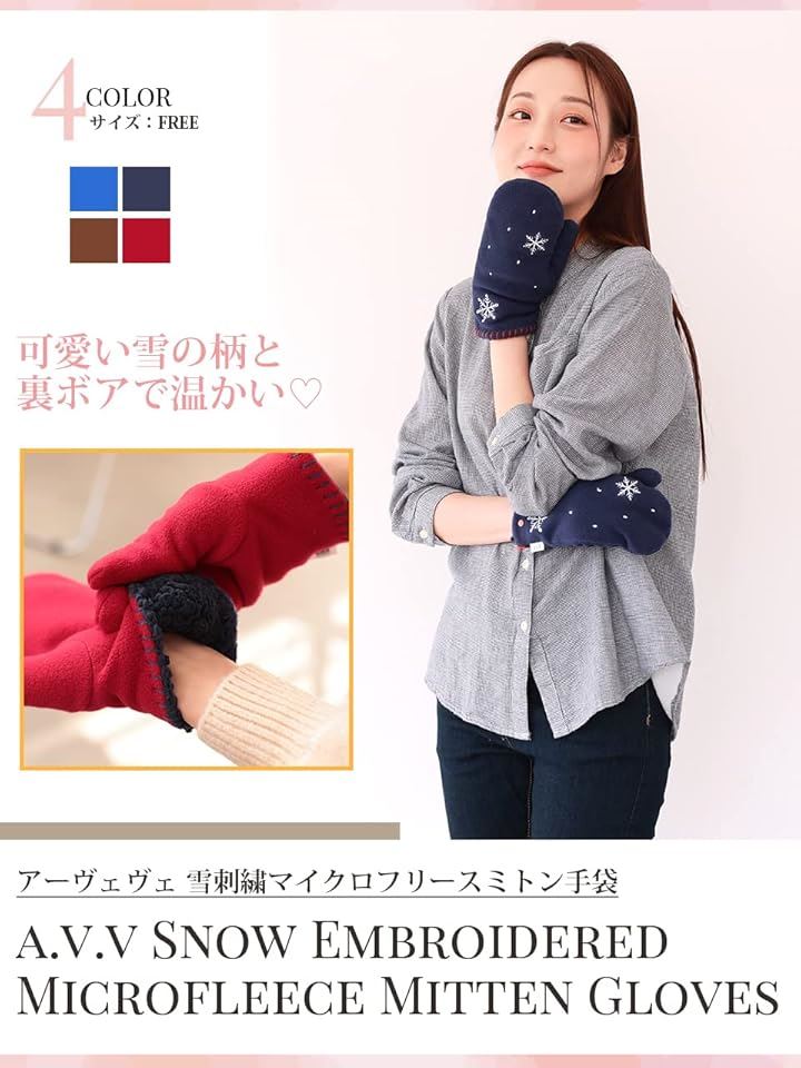 寒さしらずの 裏ボア入り マイクロフリース 可愛い 雪刺繍 ミトン手袋 FREE M-L