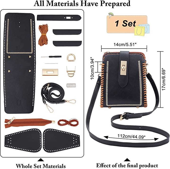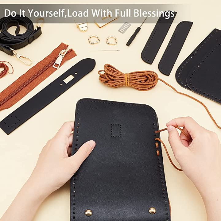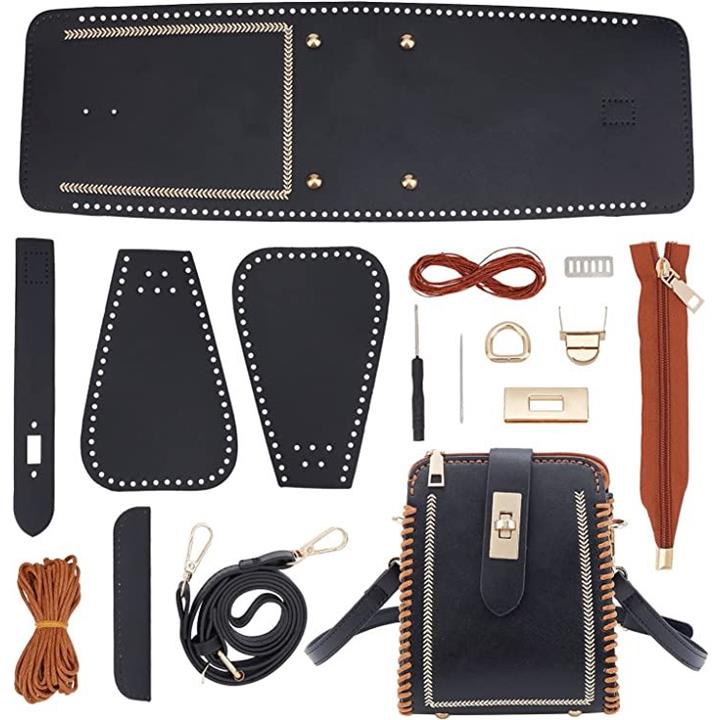 レザークラフトDIYレザーバッグ製作キット ブラックショルダー革鞄製作セット DIYレザーステッチショルダーストラップ作成キット