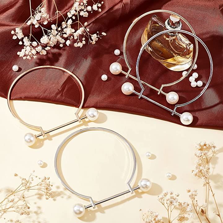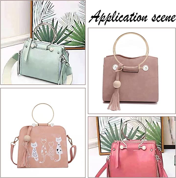 4本 バッグ 持ち手 丸 ビーズ パールハンドバッグ 10.3x9.8cm