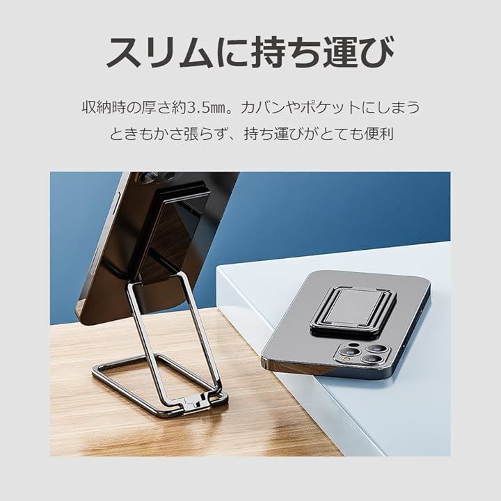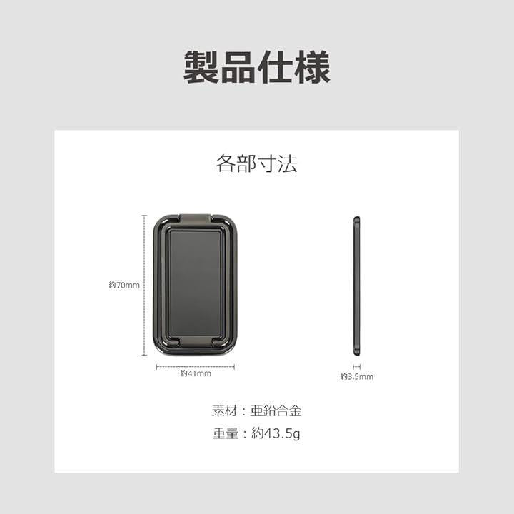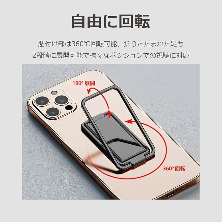 スマホ リング 薄型 スマホグリップ 折りたたみ 四角 折り畳み 360度 回転 縦置き 横置き スタンド 軽量
