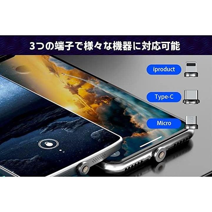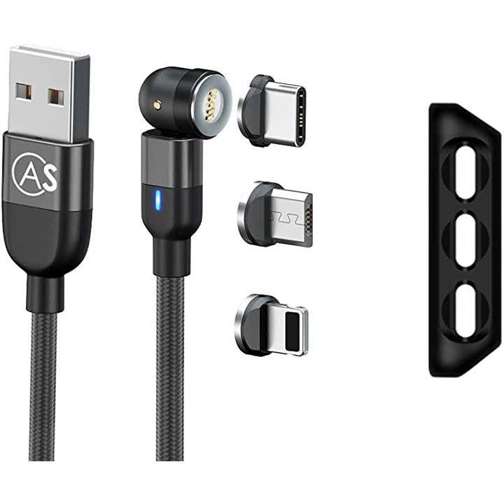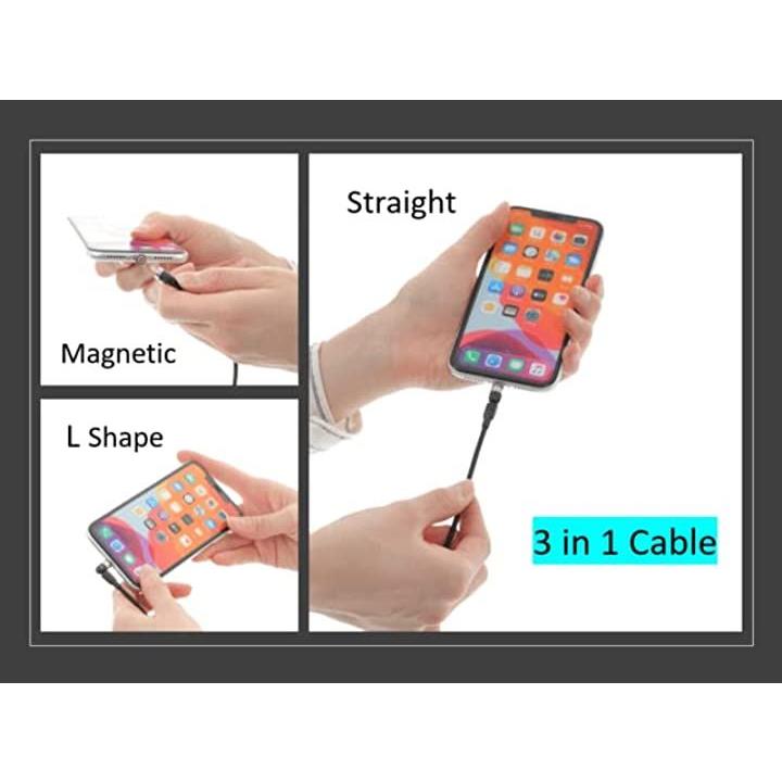 互換品540°turnケーブル 回転 マグネット 充電ケーブル 3A 高速充電 データ転送可 3in1 ios typeC micro USB テレワークに 旅行にも コネクタ収納ケース付