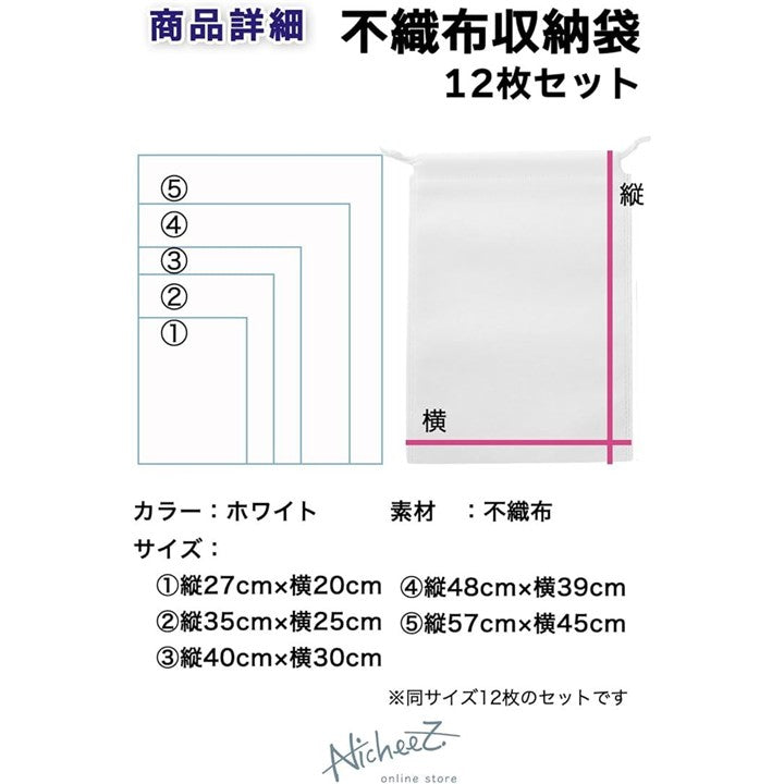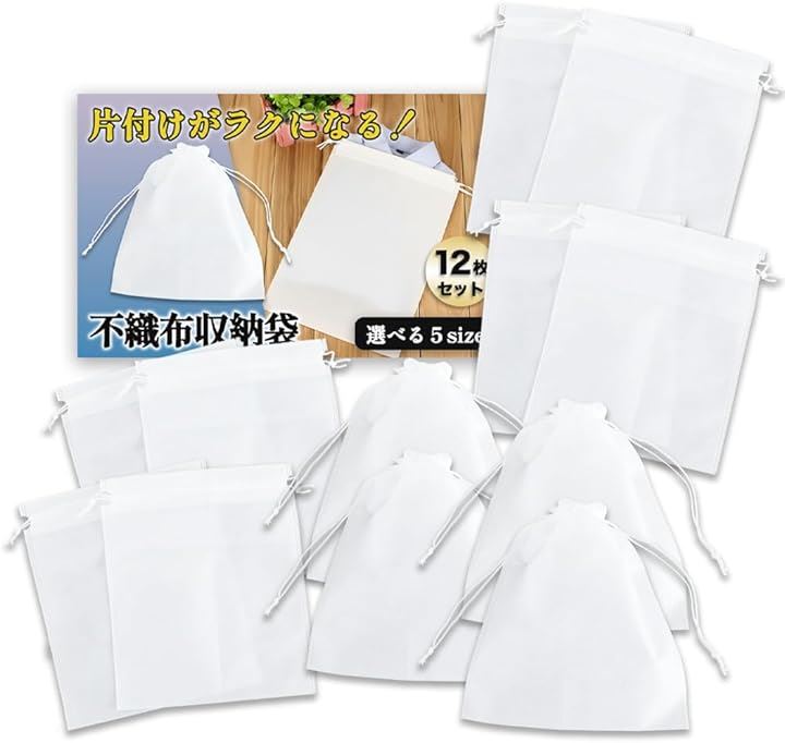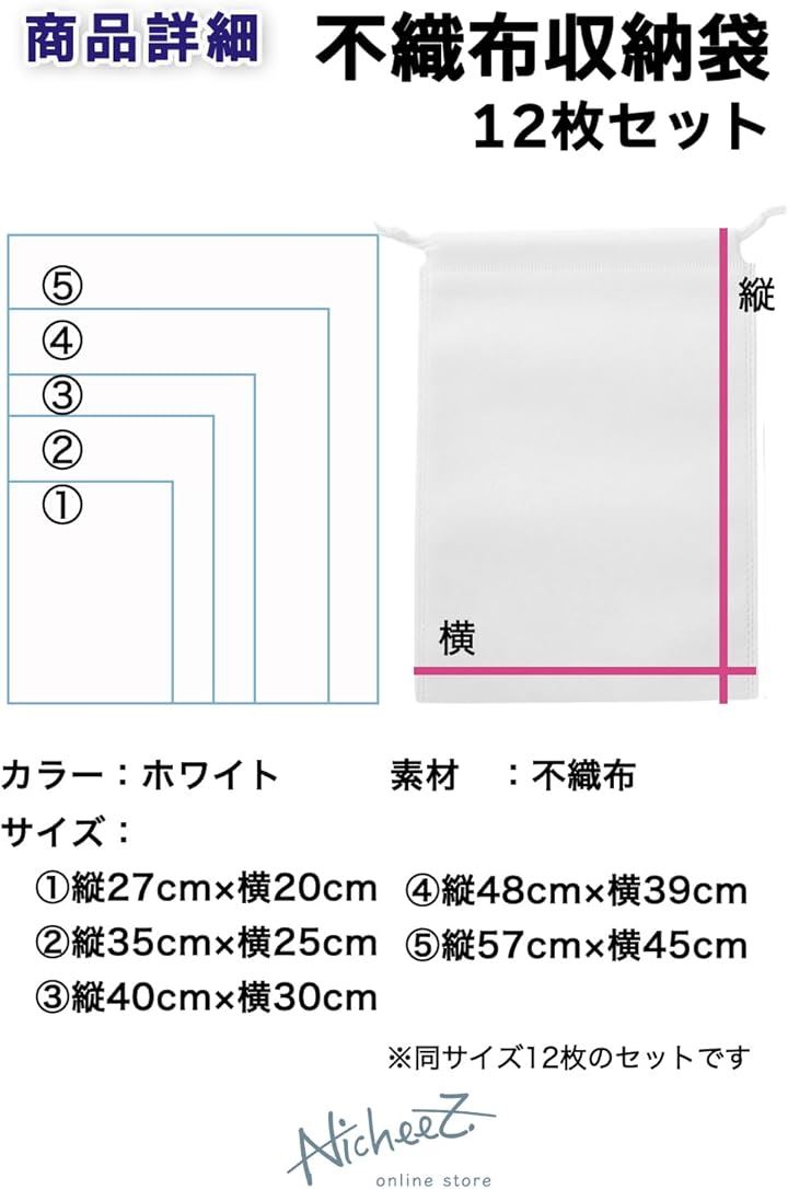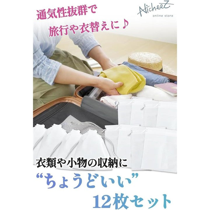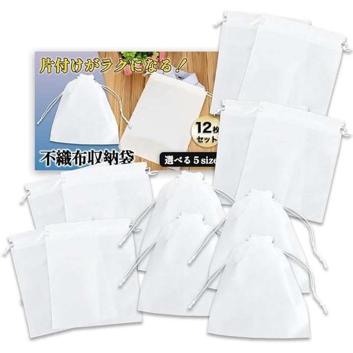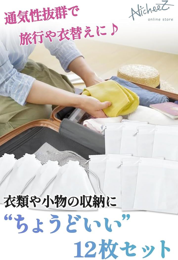 不織布 袋 巾着 カバン 収納 鞄 バッグ 靴 衣類 保管 通気 衣替え 12枚セット