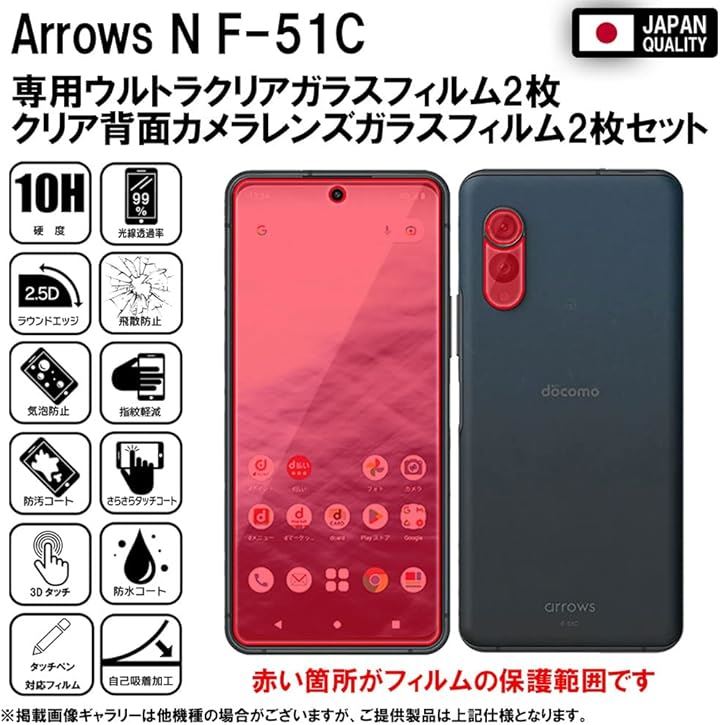 RISE 2枚+2枚 フィルム ガラスフィルム カメラフィルム レンズフィルム レンズ保護ガラス レンズカバー 保護フィルム 高透過 高光沢 日本製 旭硝子 硬度9H 2.5Dラウンドエッジ 自動吸着 気泡ゼロ 飛散防止 指紋防止 撥水撥油