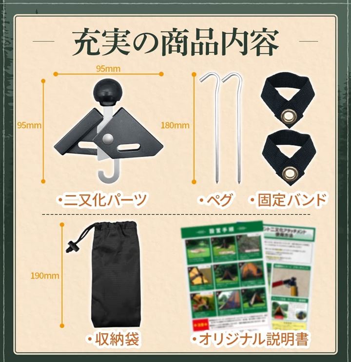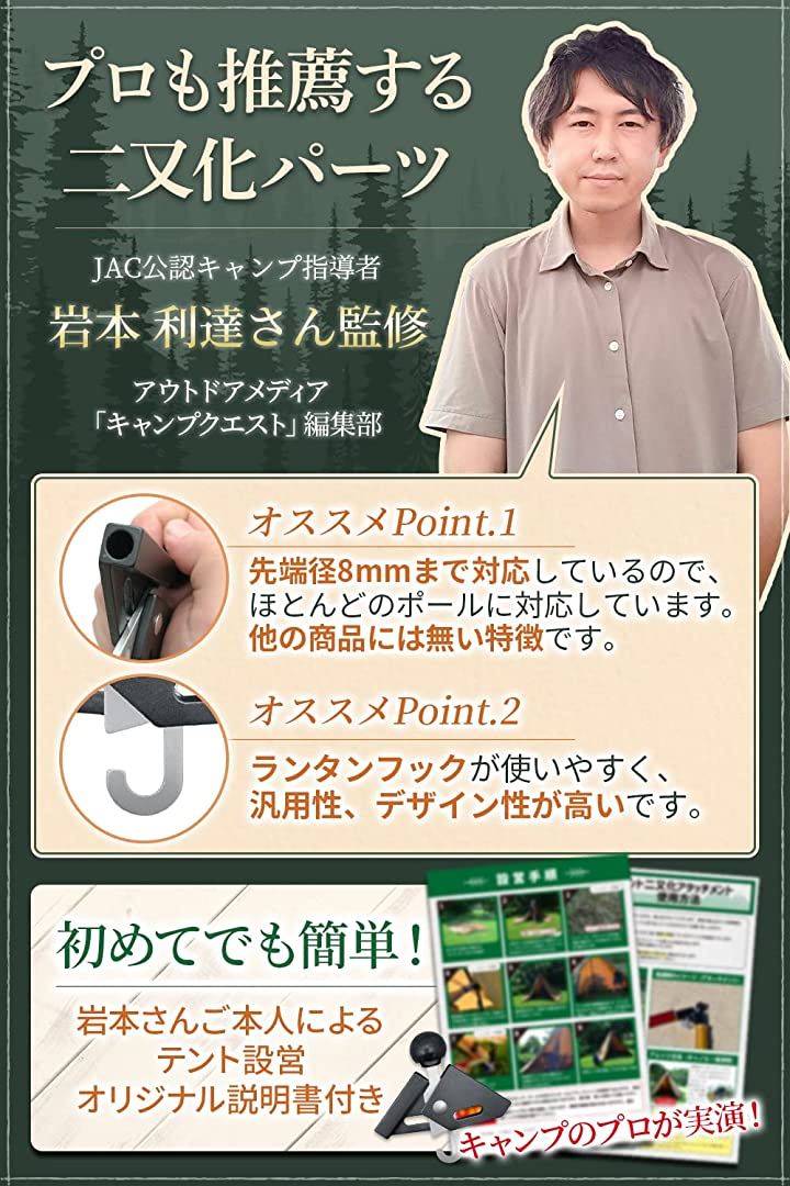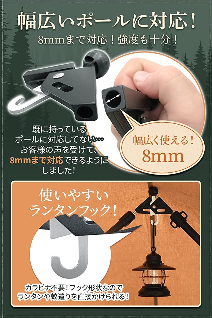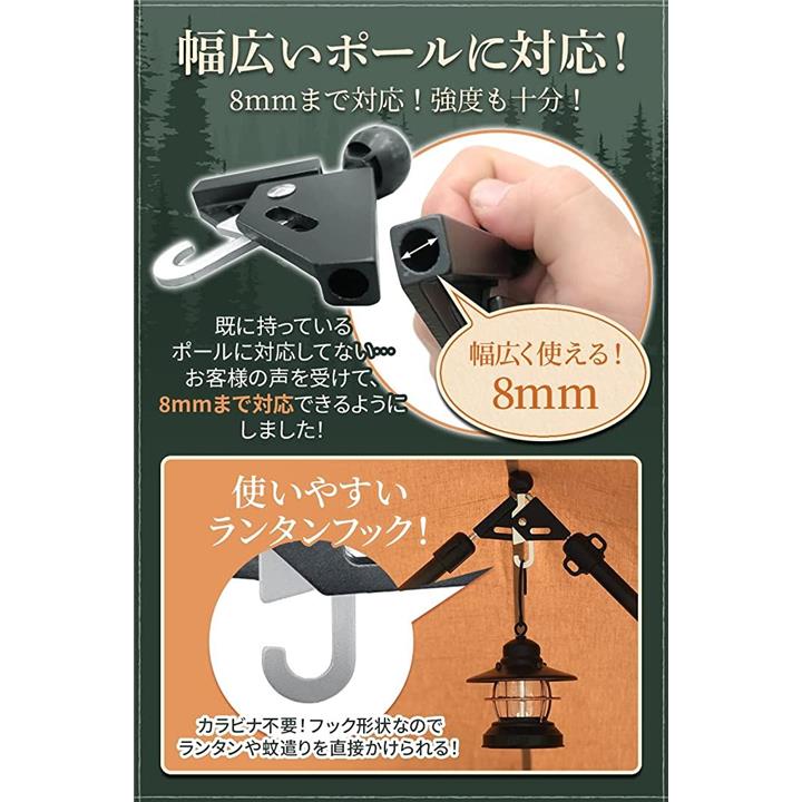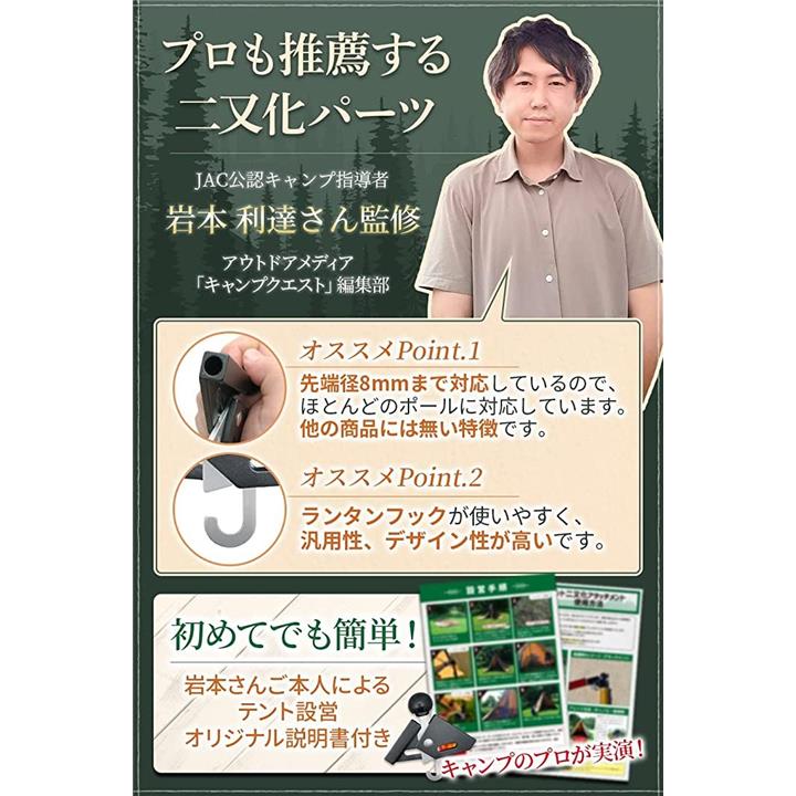 互換品 テント二又化パーツ ポール先端径8mmまで対応 固定具一式 収納袋付き ソロキャンプ アウトドア tfp-b
