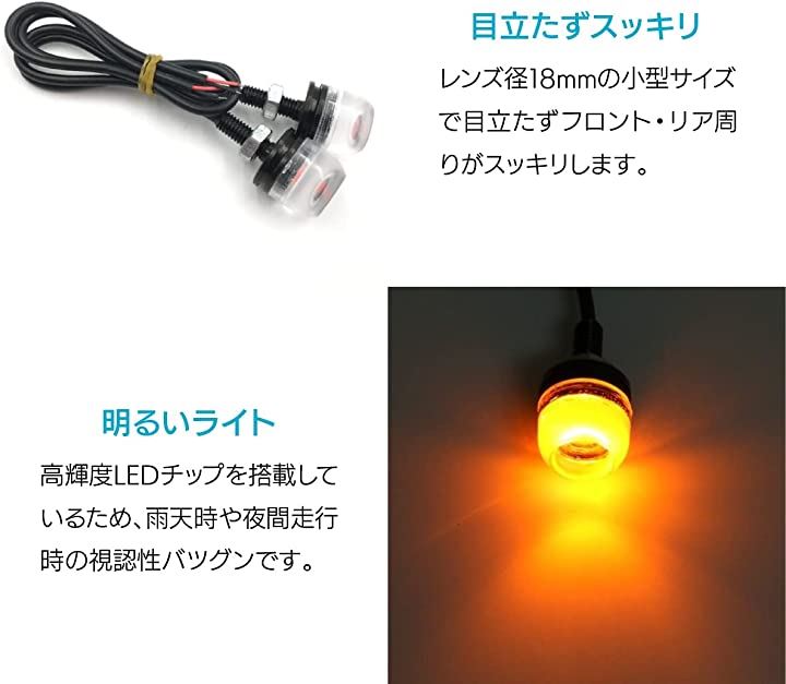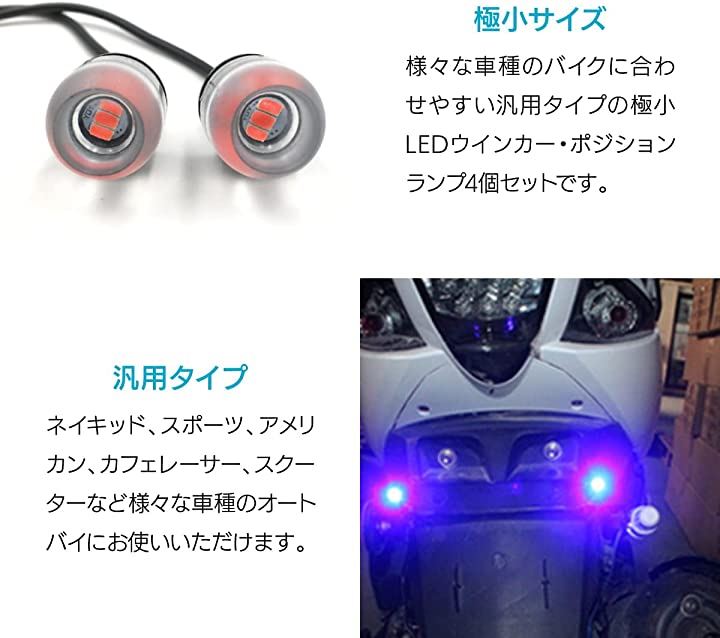 互換品 バイクウインカー LED 極小 デイライト 高輝度 ミニ 小型 M6 汎用 4個セット