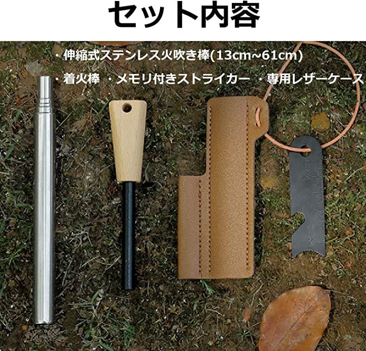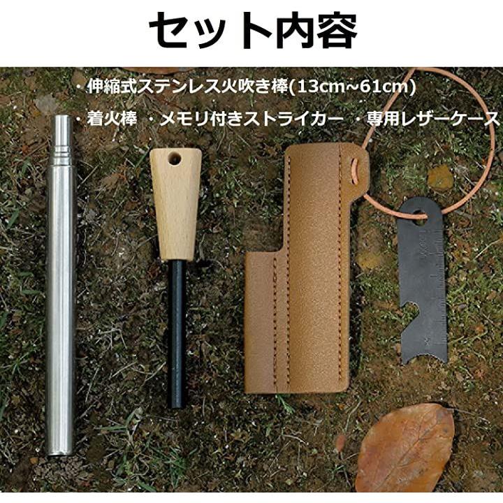 火起こしセット アウトドア キャンプ バーベキュー BBQ 火吹き棒 コンパクト ファイヤースターター 焚き火 火打ち石