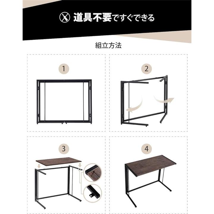 サイドテーブル 折りたたみテーブル 幅80x奥行40x高さ65cm ソファーサイドテーブル 工具不要