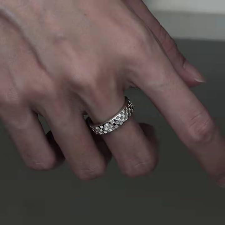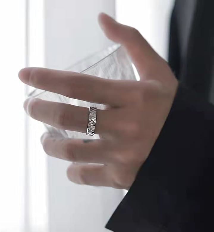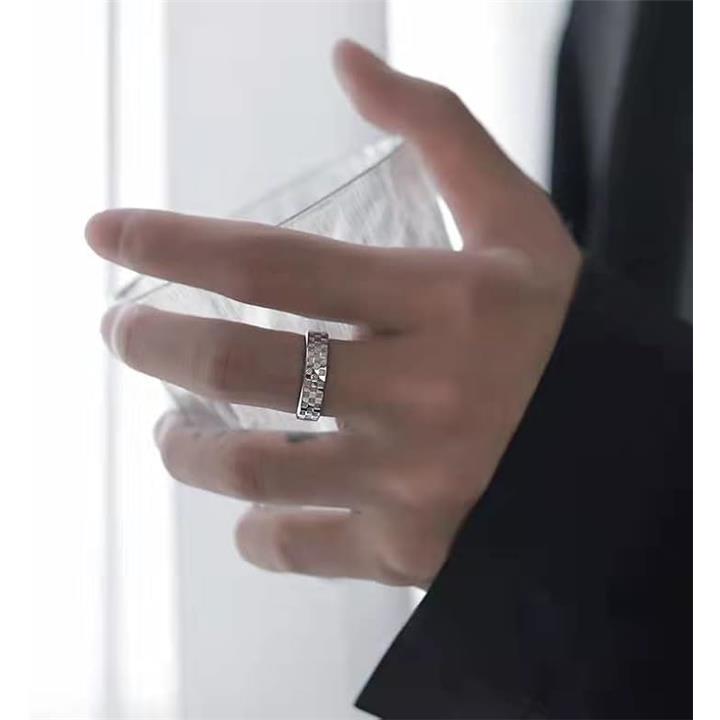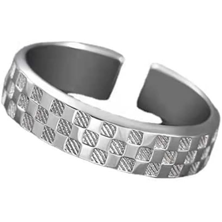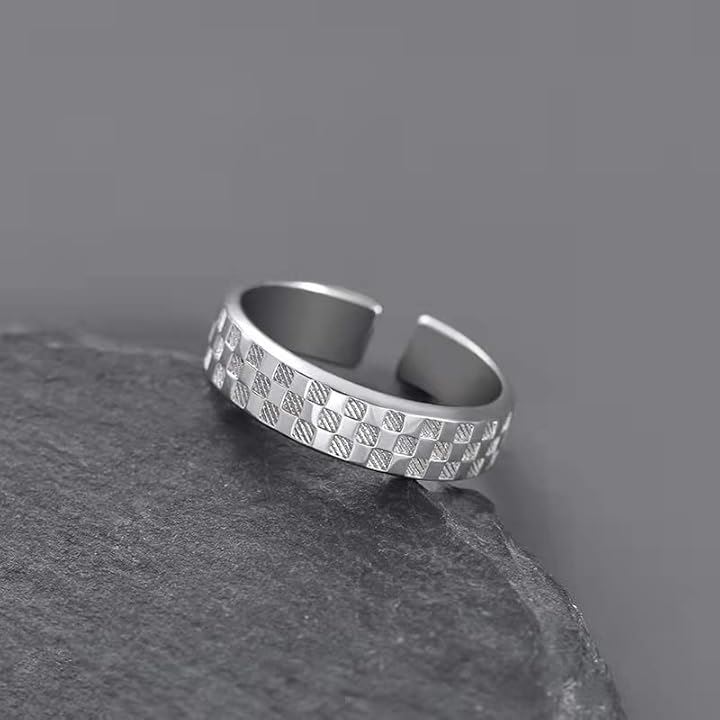 リング メンズ 指輪 シンプル チェック柄 お洒落 調整可能 開口型 15-20号 かっこいい 人気 アクセサリー