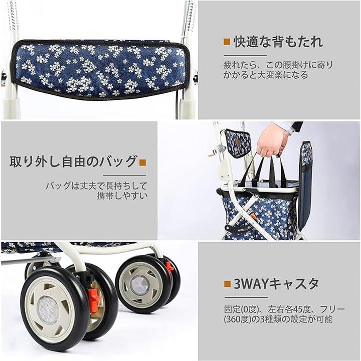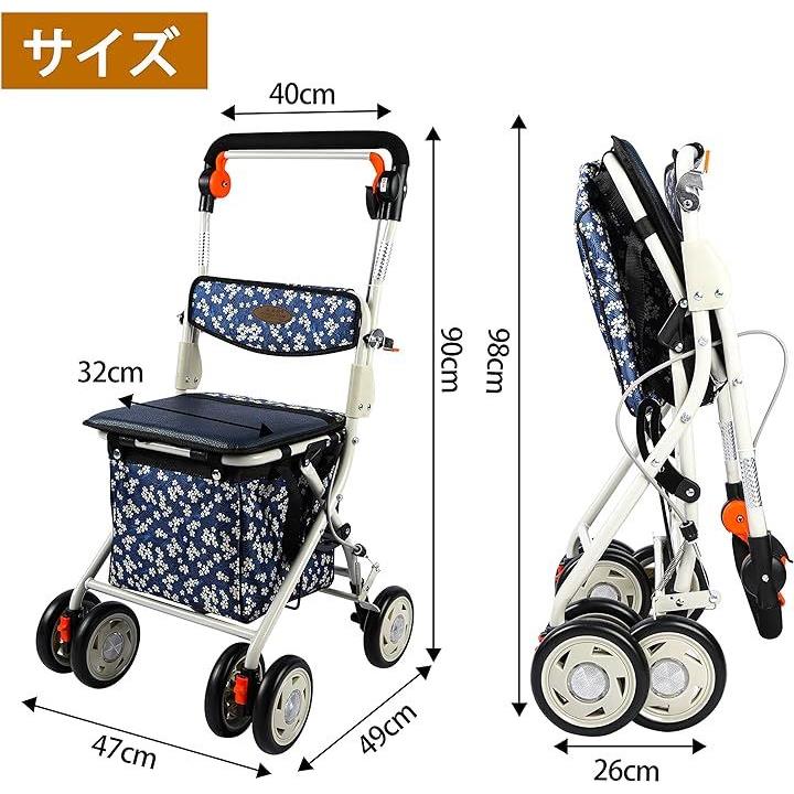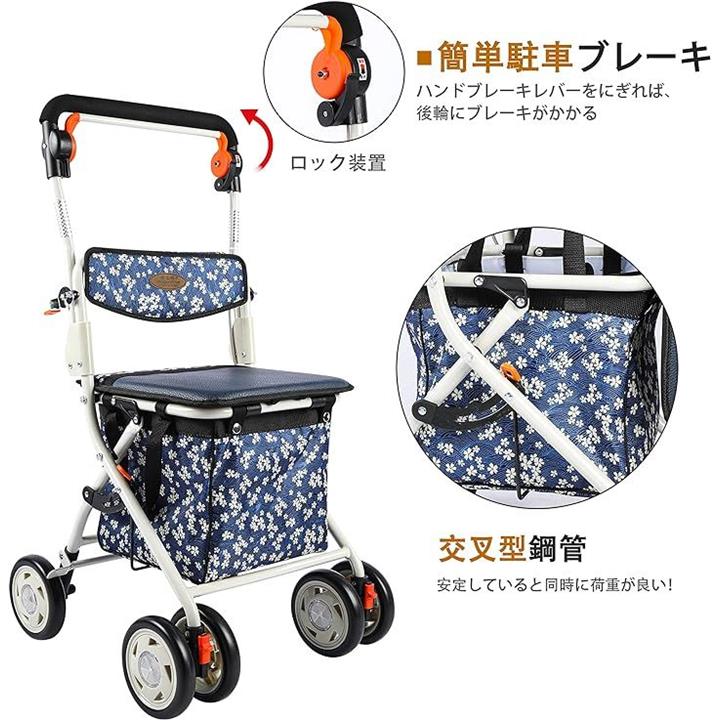 シルバーカー 高齢者向けショッピングカート 歩行車 高齢者用カー 折りたたむ 手押し車 歩行補助 座れる 軽量 ハンドブレーキ 日本語取扱説明書