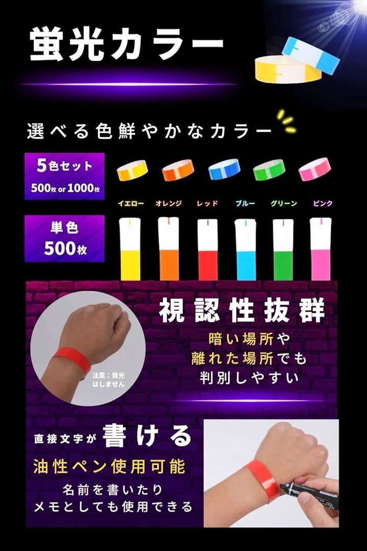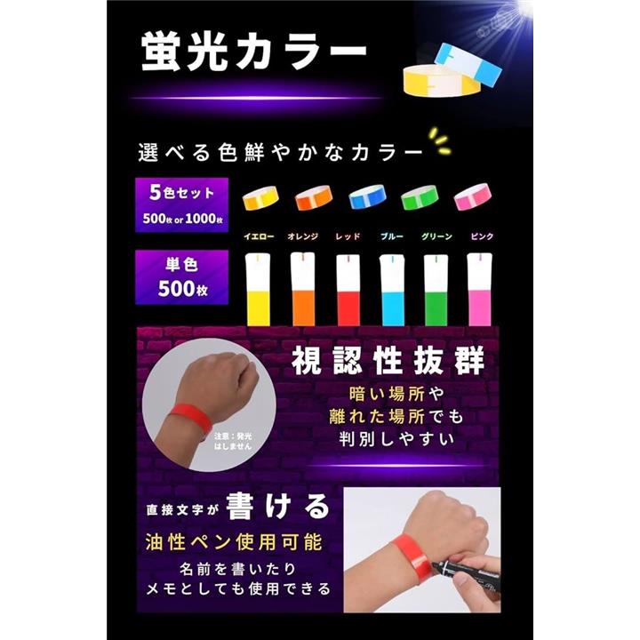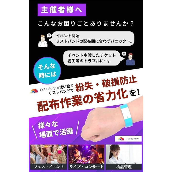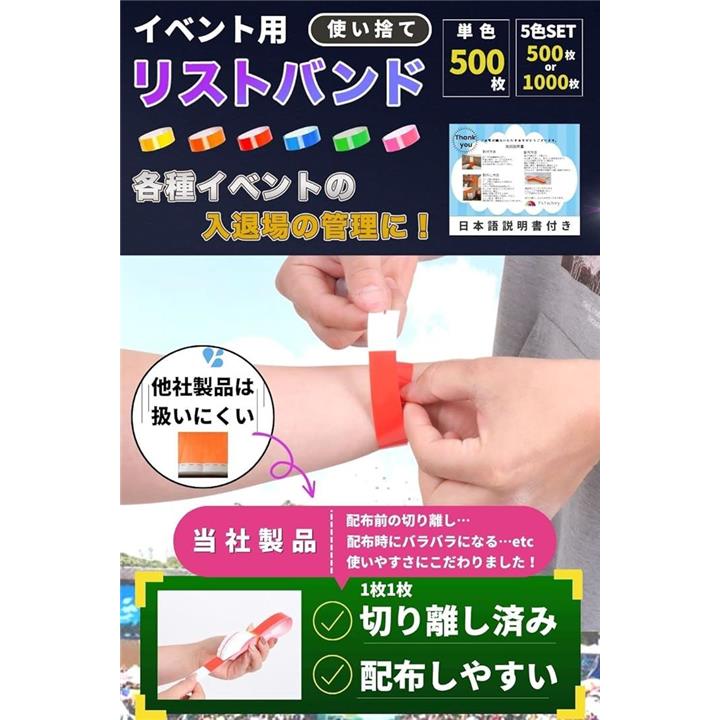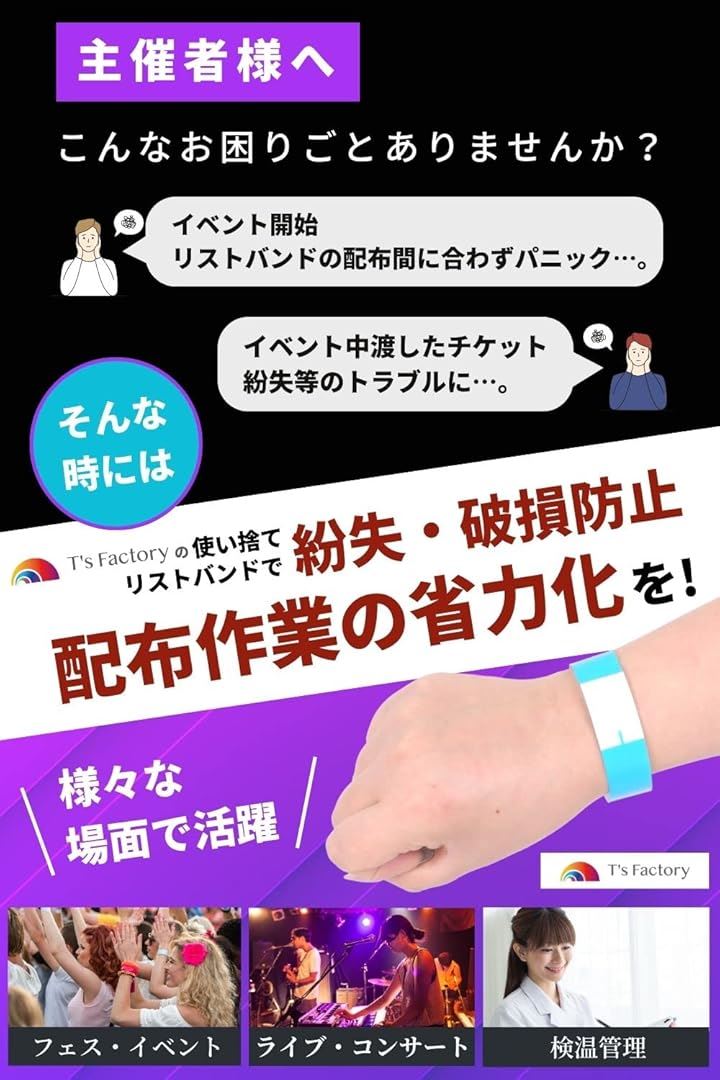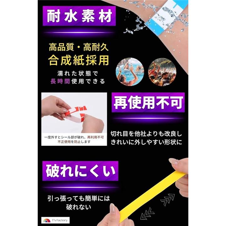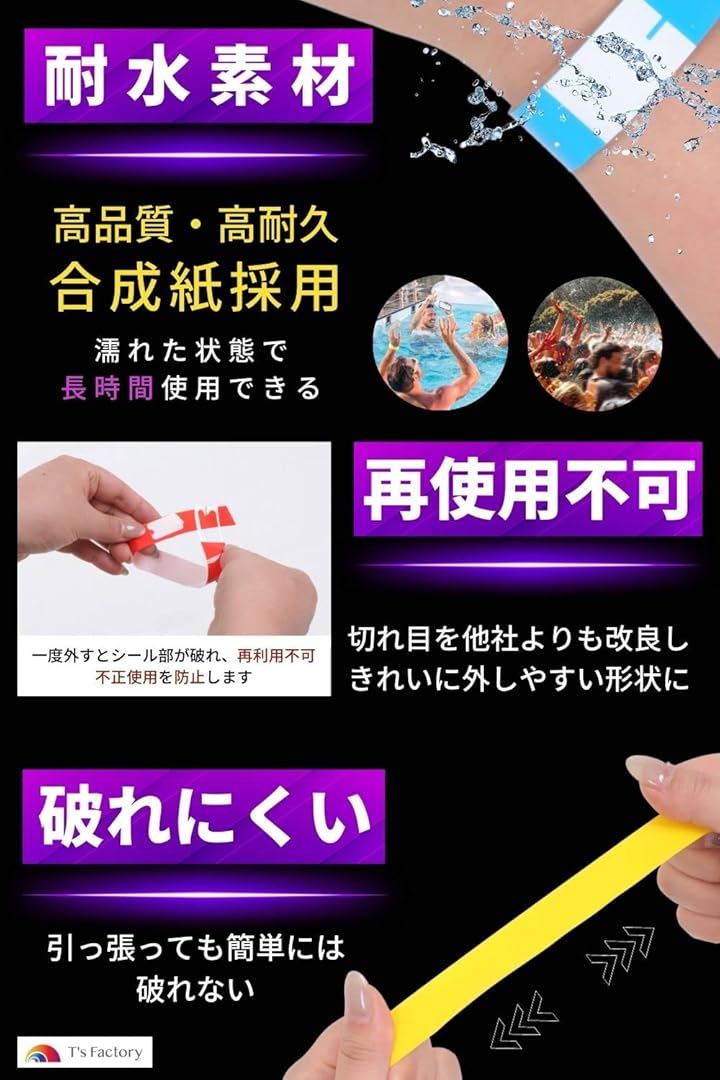 使い捨てリストバンド らくらく配布 イベント 入退場管理 日本語取扱説明書付き 高耐久防水紙 切り離し済 簡単配布