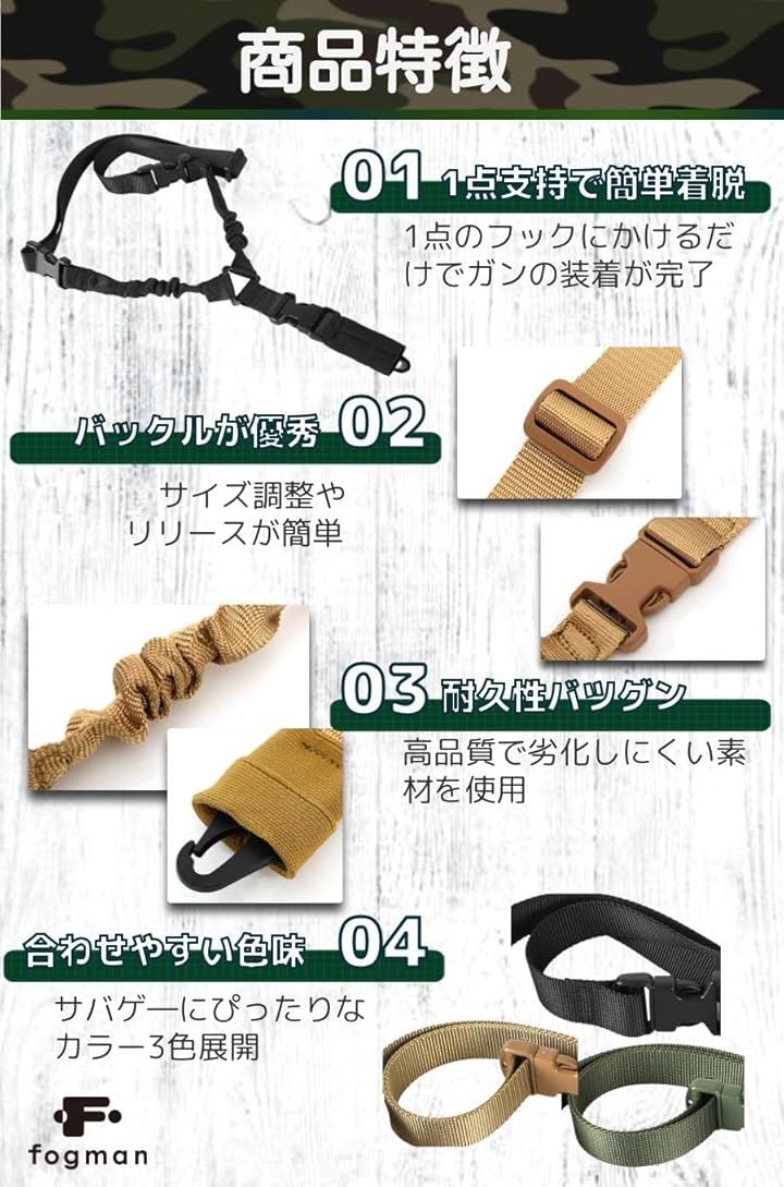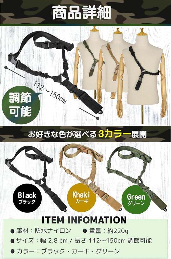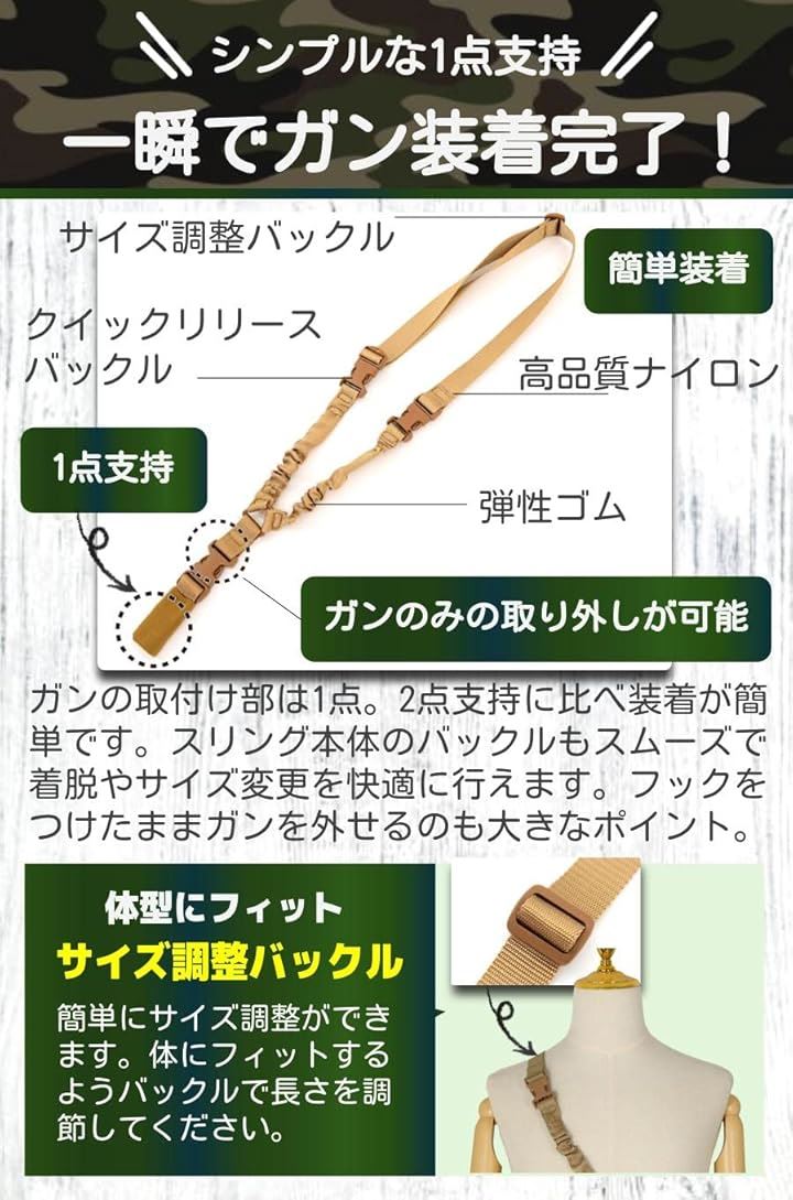 スリング サバゲー 1点支持 ライフル エアガン 弾性ゴム 軽量ナイロン 長さ調整