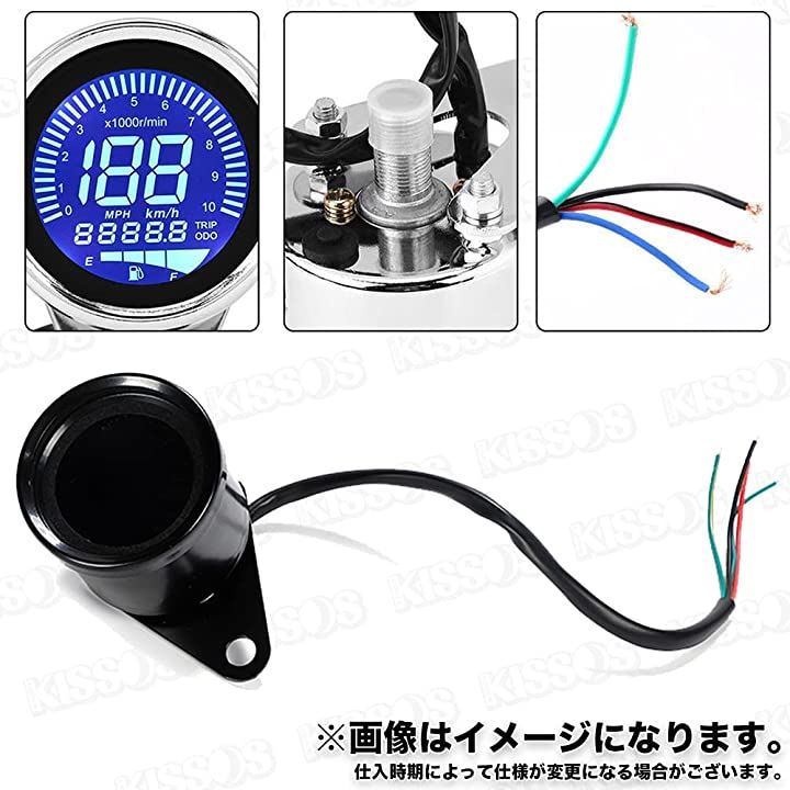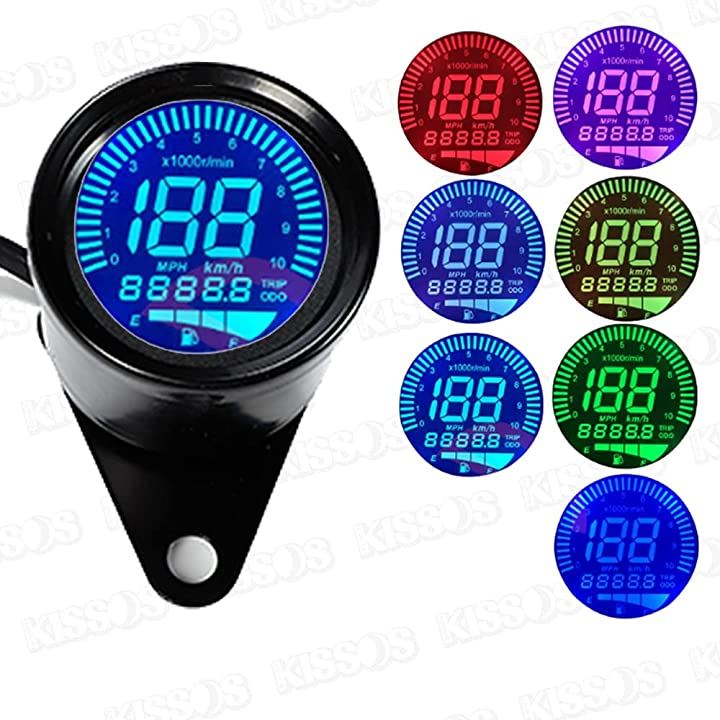 互換品バイク デジタル スピード タコ メーター 12V LED 機械式 走行距離計 7色切替 バックライト 汎用