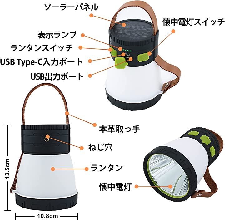 ランタン 懐中電灯 ledランタン 充電式 ソーラーランタン キャンプランタン USB-C充電式 7200mAh |