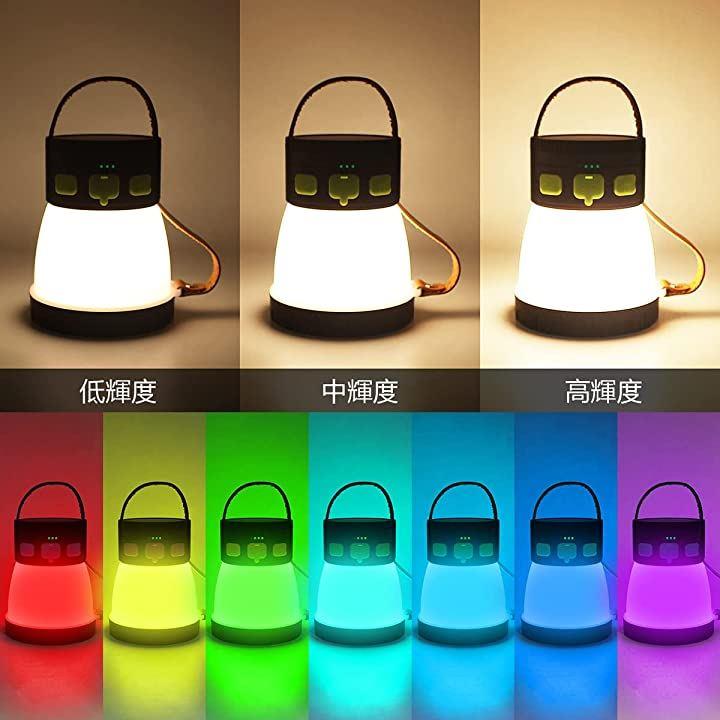 ランタンのスイッチを押すと、暖色低輝度>暖色中輝度>暖色高輝度>RGBライト。