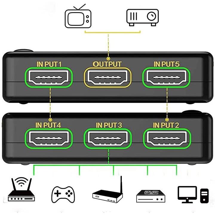 PS4proやXboxOne、WiiUなど様々なゲーム機やBlu-rayプレーヤーなど5台の映像・音声を1台のハイビジョンテレビやプロジェクターなどに簡単に切り替え出力できるHDMIセレクターです。