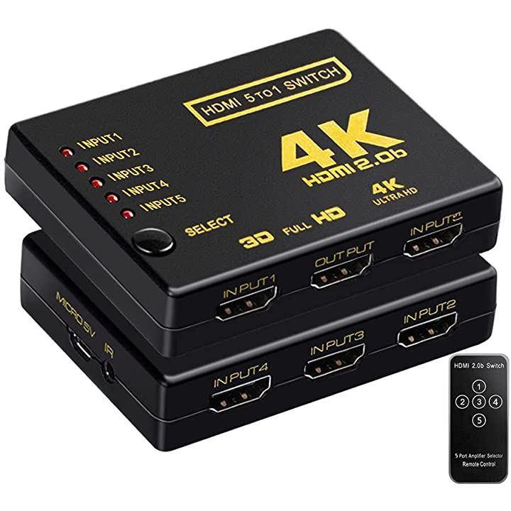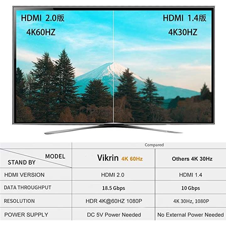 「互換品」Vikrin HDMI 切替器 2.0 HDMI セレクター 5入力1出力 4K60Hz HDCP2.2対応 自動手動切替機能搭載 USB給電ケーブル付き リモコン付き |