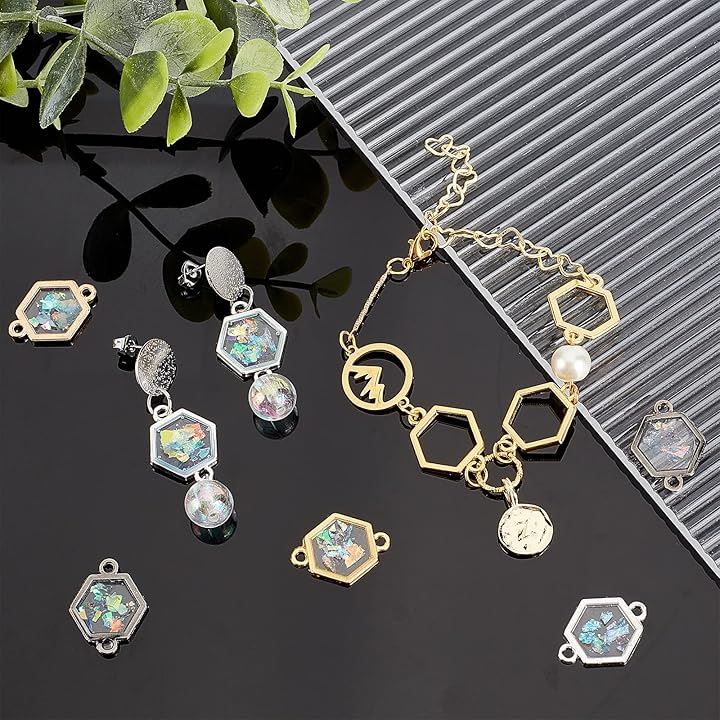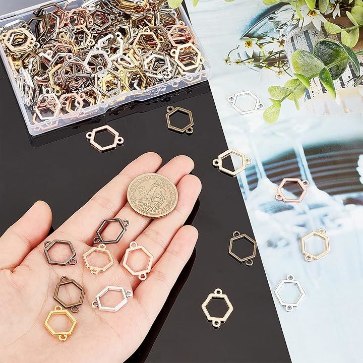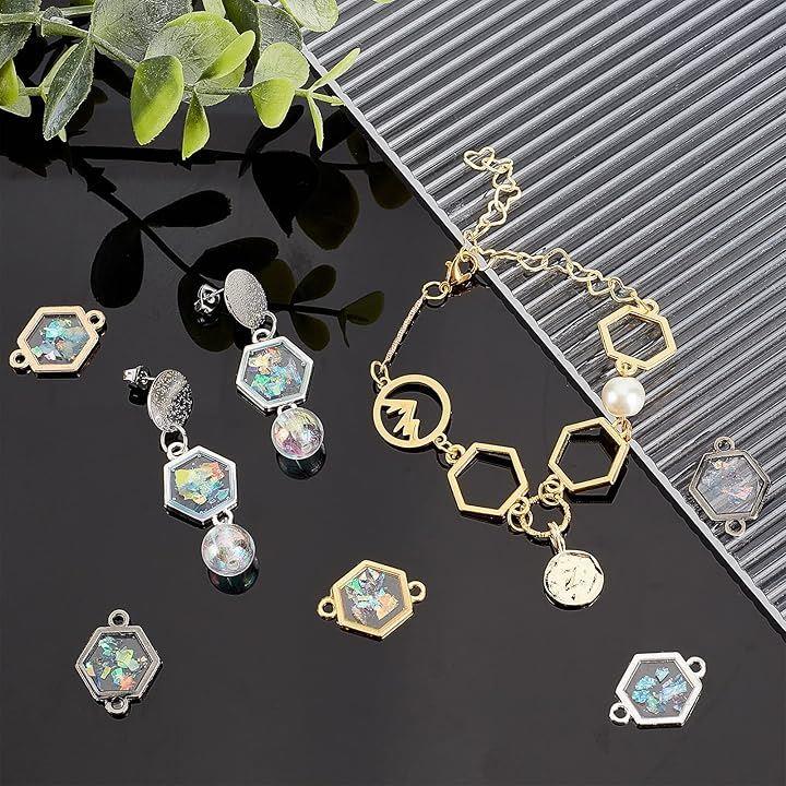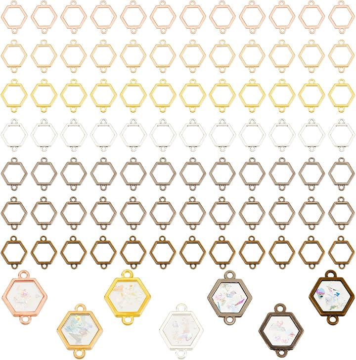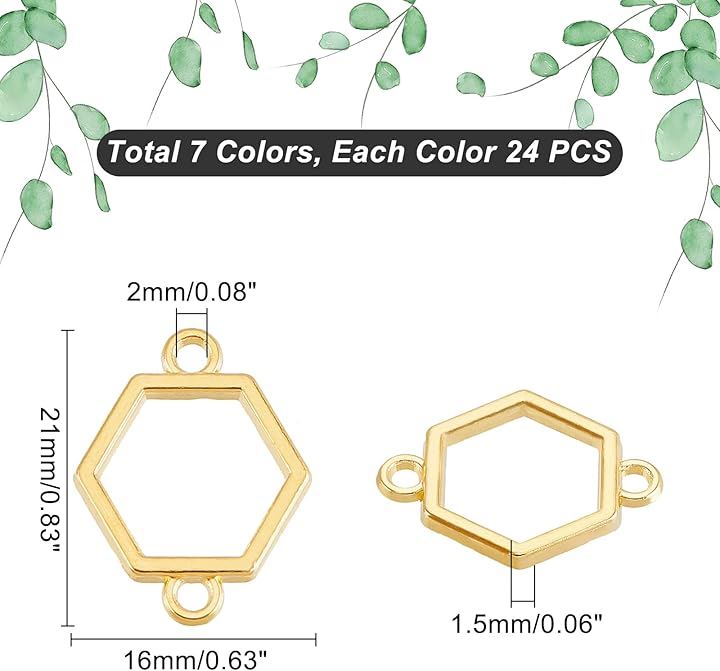 レジン枠 空枠 7種168個 カン付き アクセサリーパーツ チャーム 合金 ゴールド かわいい 六角形 手作り ハンドメイド デコ素材 DIY用