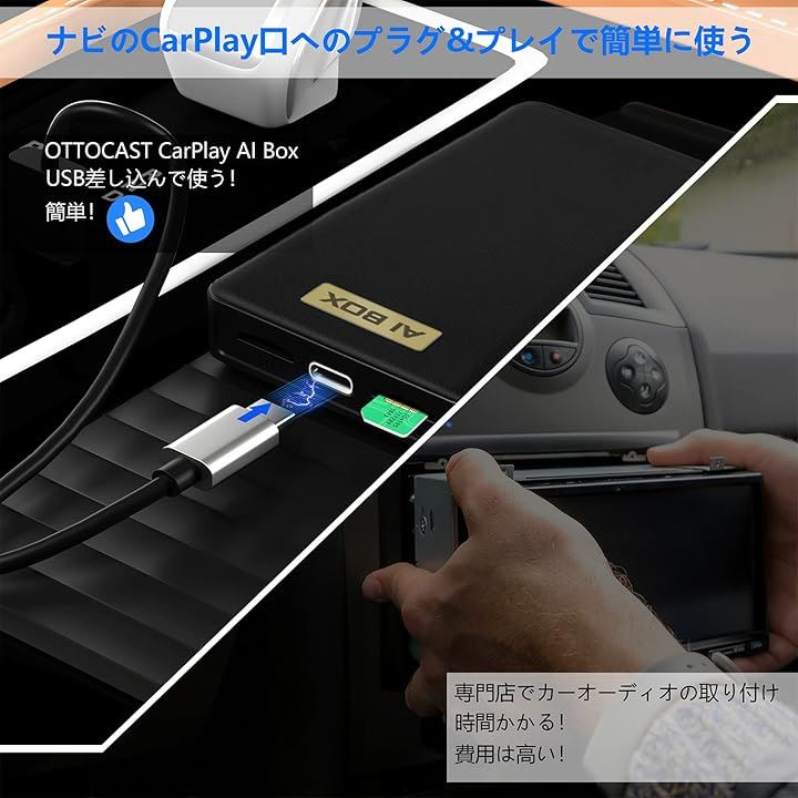 「互換品」「公式」OTTOCAST CarPlay AI Box オットキャスト Android 10.0 カーオーディオ SIMカード/micro SDカード対応(メモリ4GB+ストレージ64GB) GLONASS内蔵 |