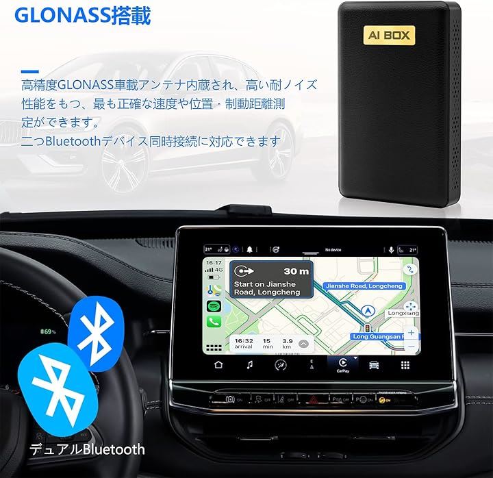 高精度GLONASSアンテナ内蔵OTTOCASTCarPlayAIBoxGLONASSアンテナは高精度がある、高い耐ノイズ性能をもつ、正確な速度や位置・制動距離測定ができます。