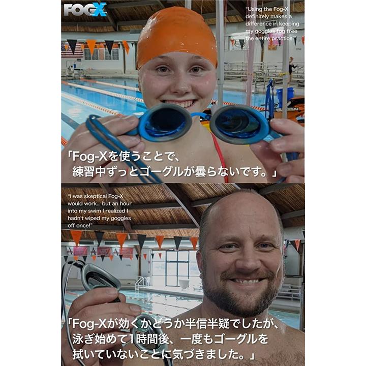 「Fog-Xが効くかどうか半信半疑でしたが、泳ぎ始めて1時間後、一度もゴーグルを拭いていないことに気づきました。」