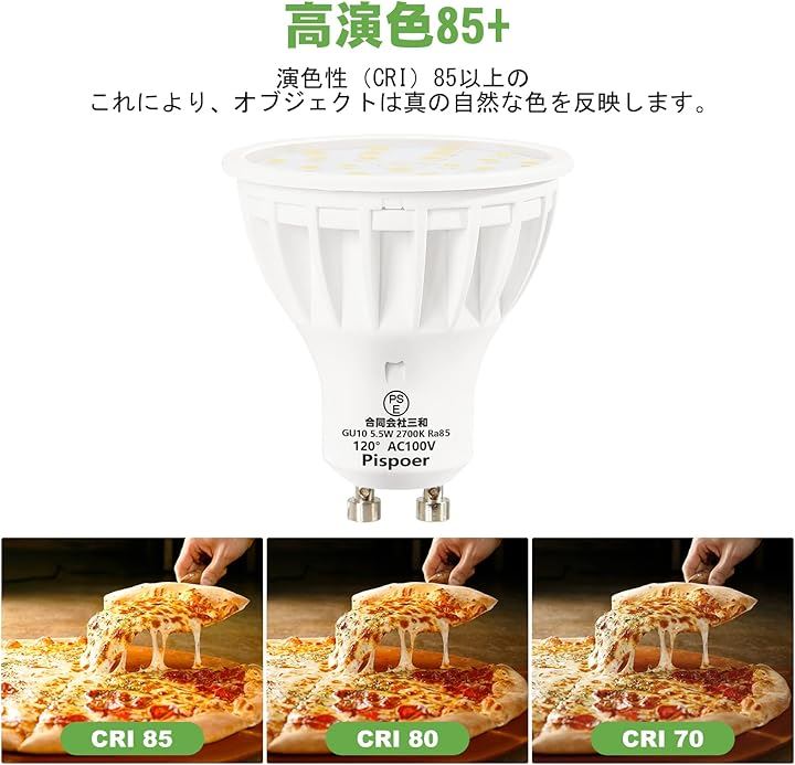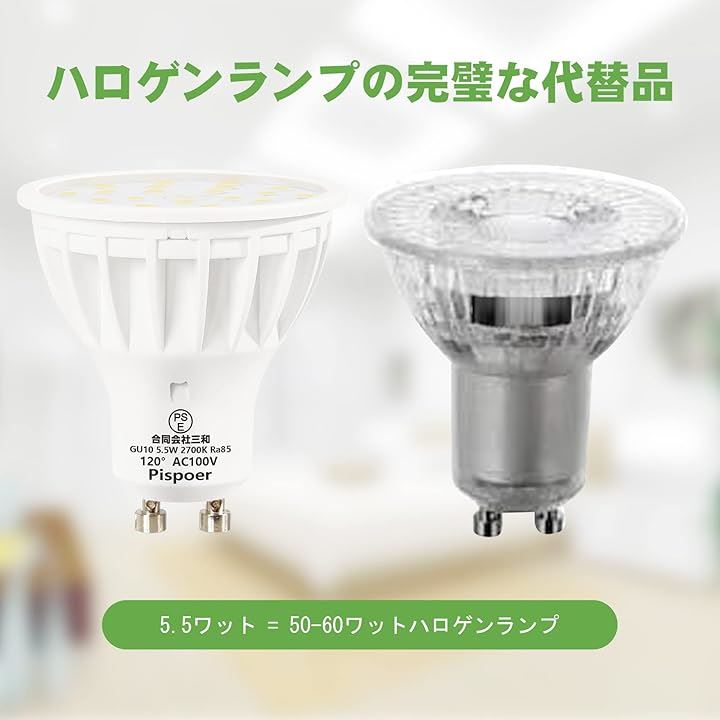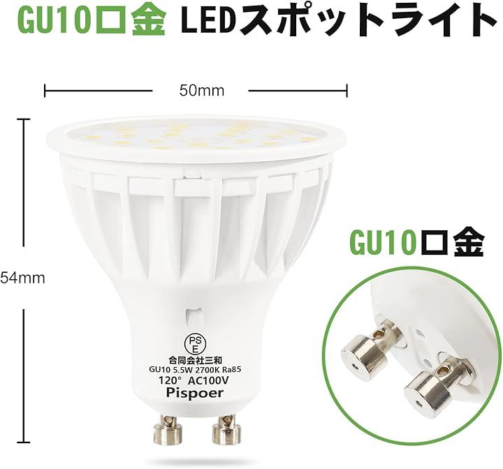 LED電球 GU10口金 5.5W スポットライト ハロゲン電球50-60W相当 高演色RA85 600LM 非調光 ビーム角120度 ダクトレール用LEDスポットライト