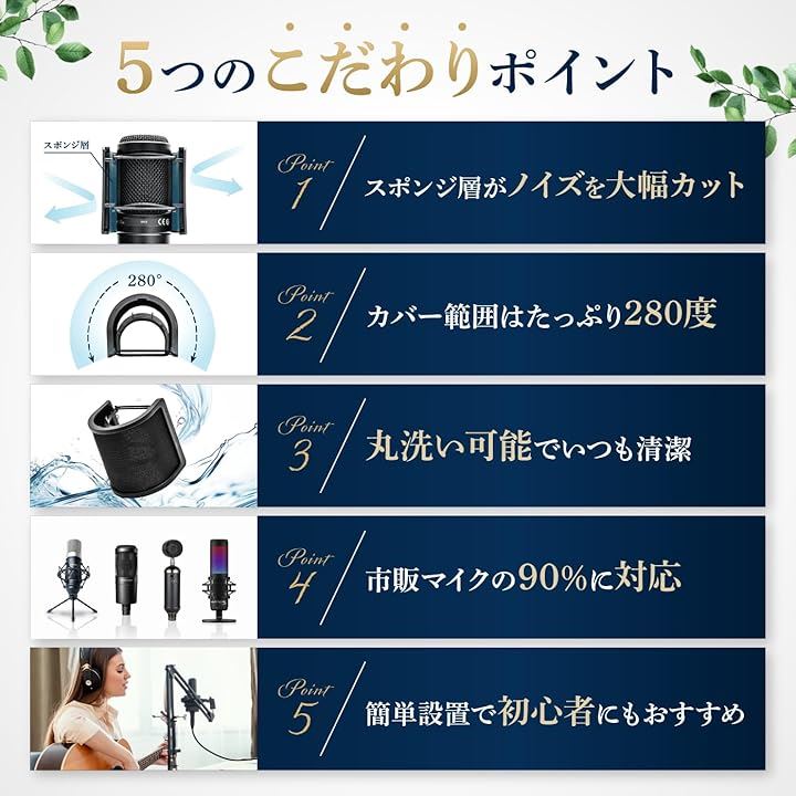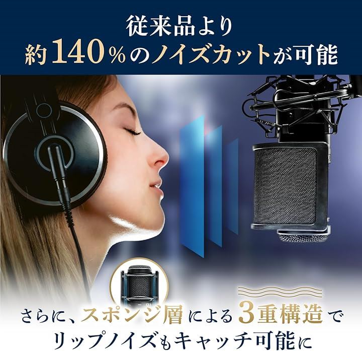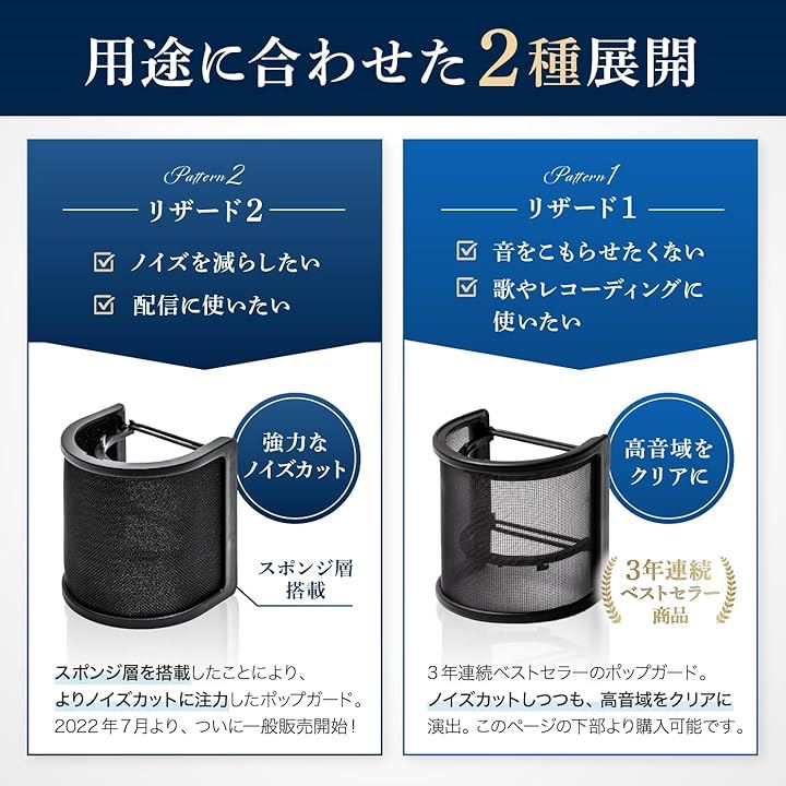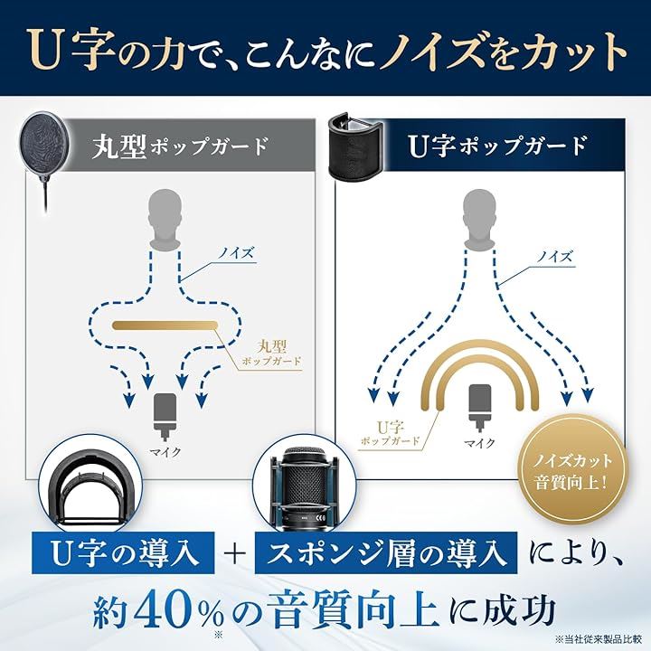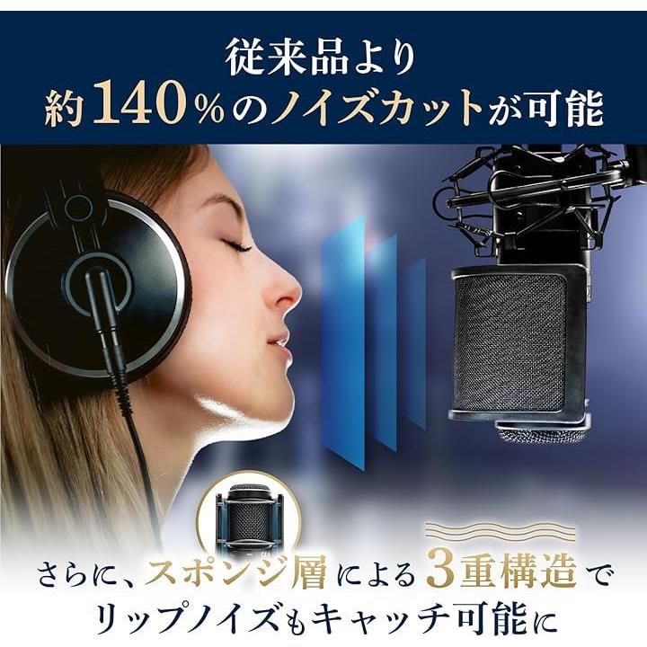 互換品ポップガード ポップブロッカー U型 金属フィルター搭載 マイク ノイズ防止スポンジ層搭載モデル リザード2