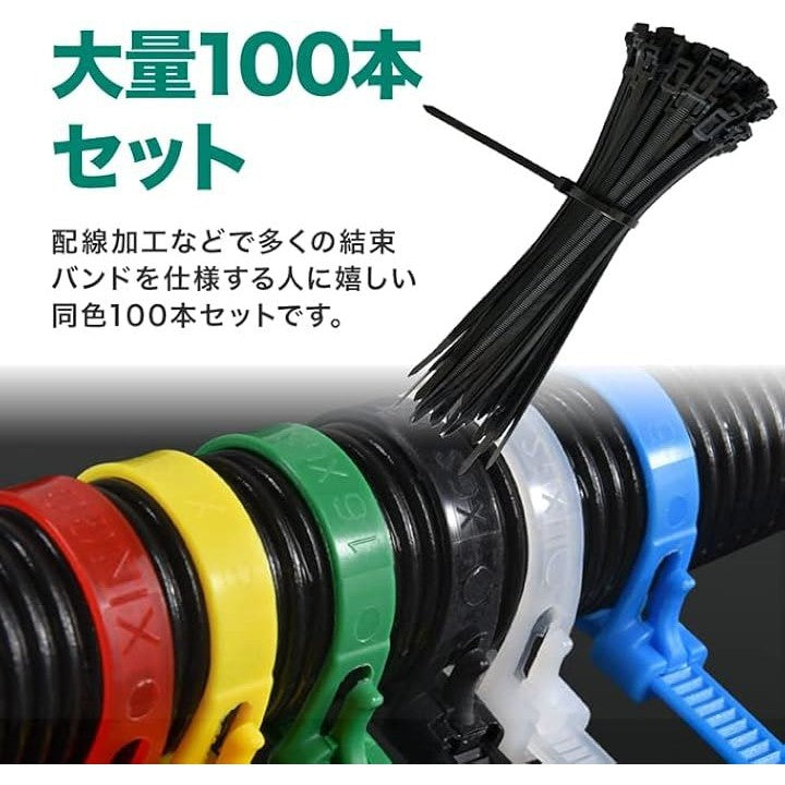 「繰り返し利用可能」結束バンド 取り外し 長い しっかり固定 丈夫 利用可能 ShopXJ 100本セット |