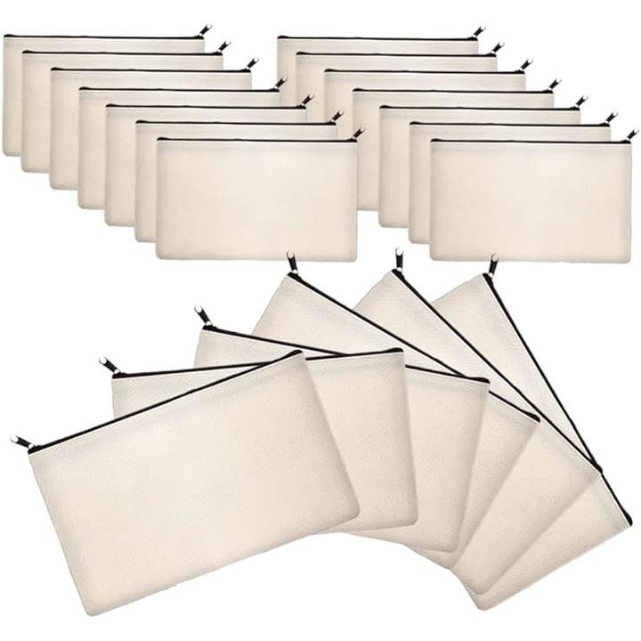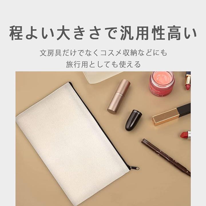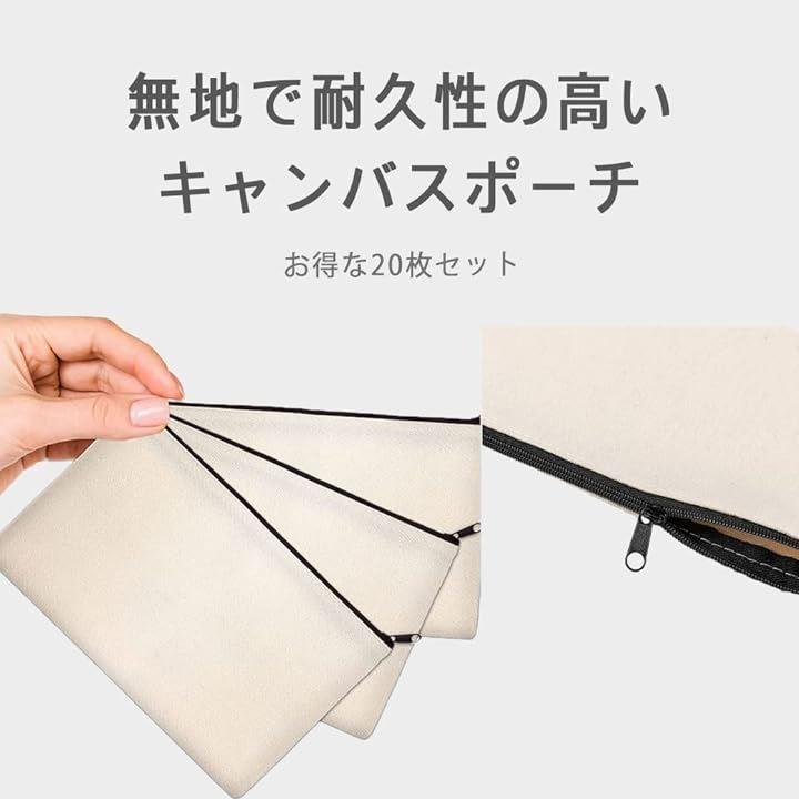 互換品無地ポーチ ジッパー式ファイル袋 キャンバス ファスナー付き袋 13x21cm 20枚入