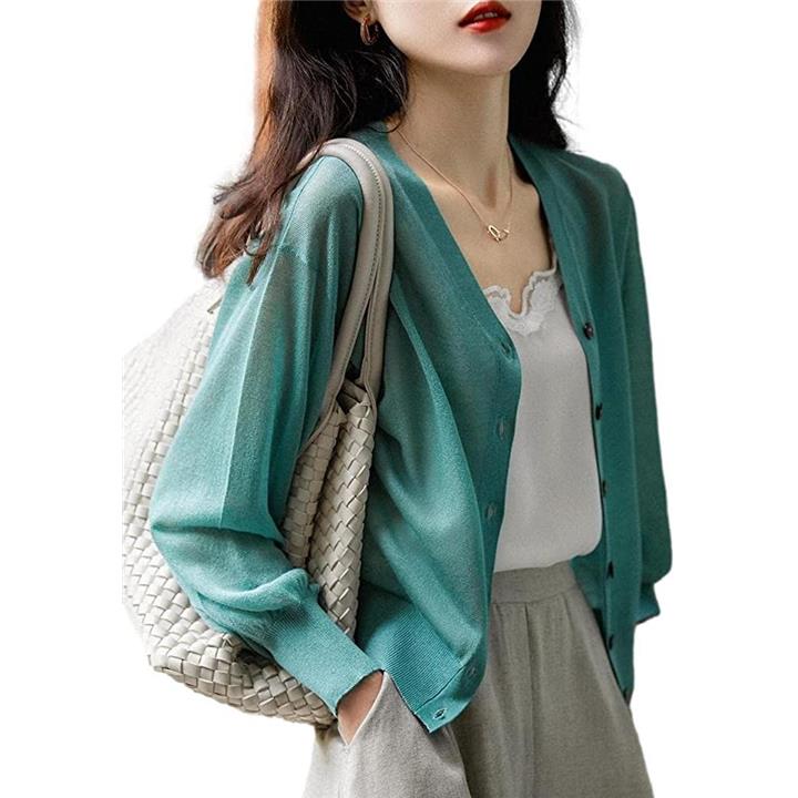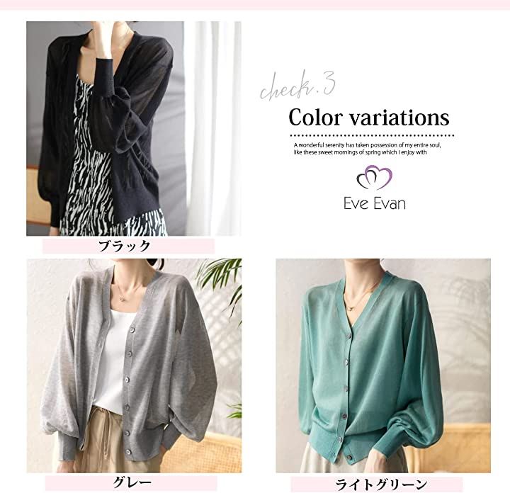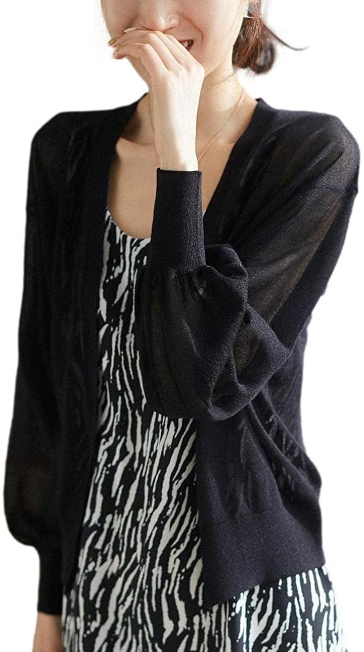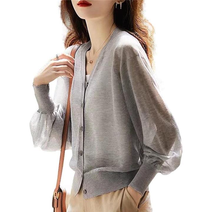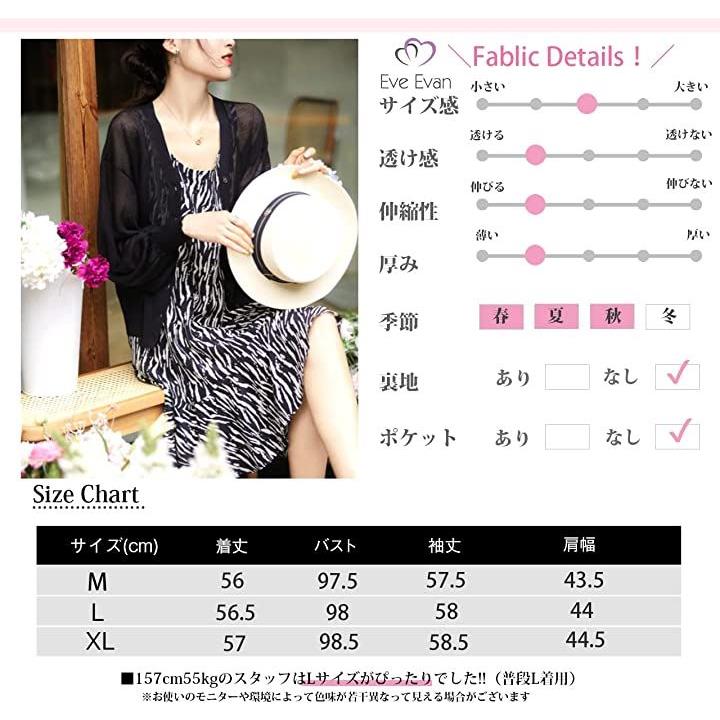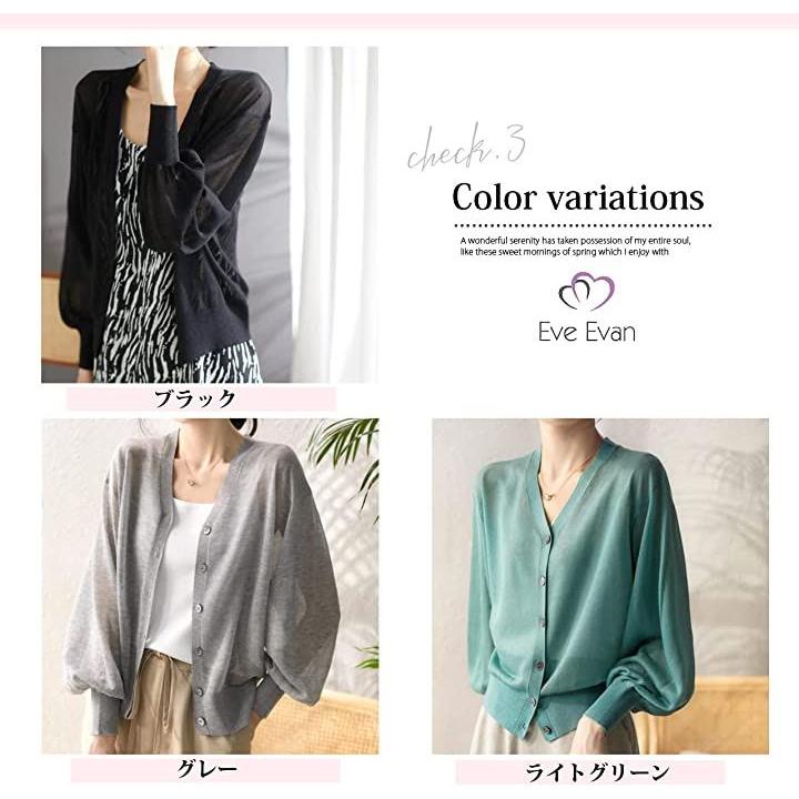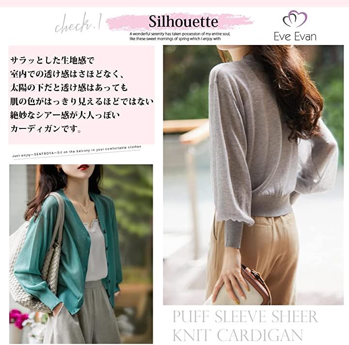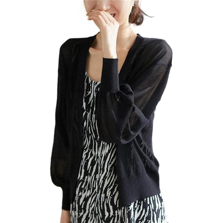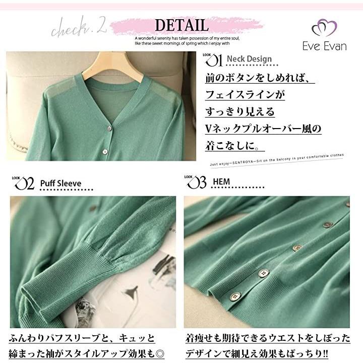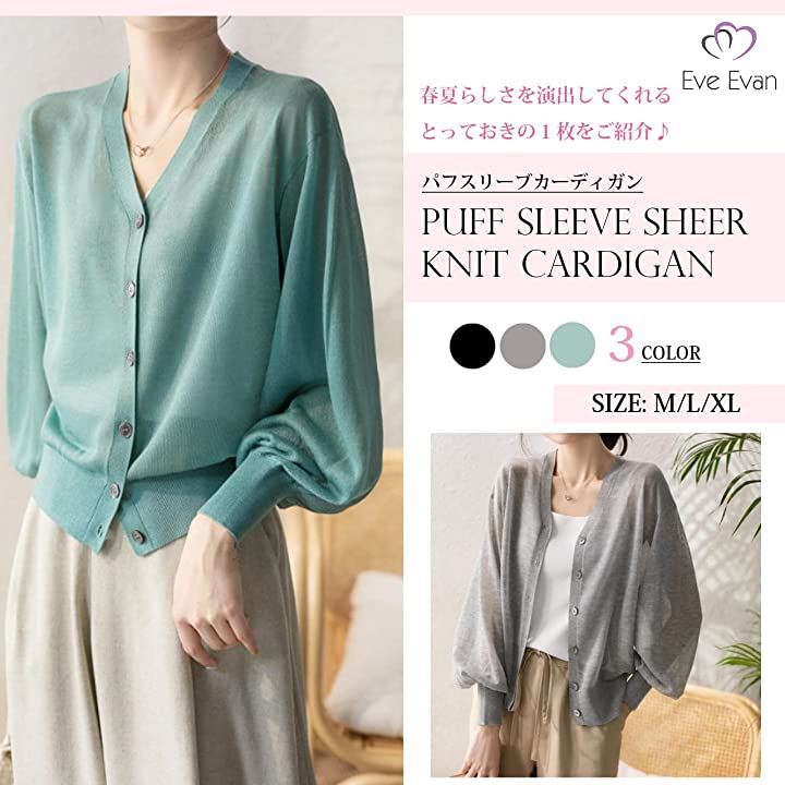 イヴエヴァン パフスリーブ ニット カーディガン 透け感 Vネック 羽織 レディース