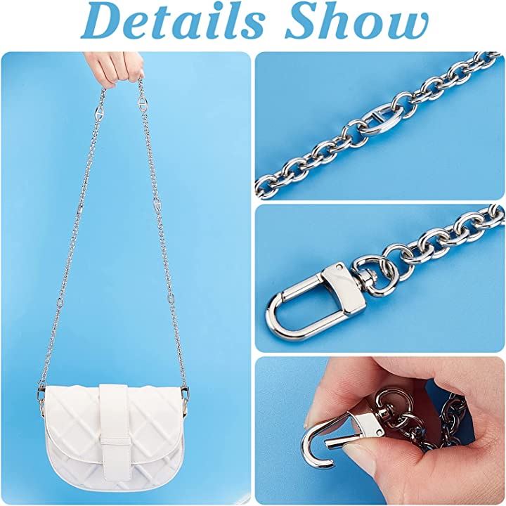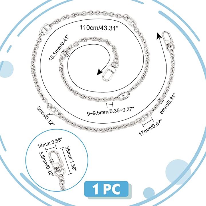 バッグチェーンベルト メタルショルダーベルトショルダーストラップ バッグ持ち手 ハンドバッグ取っ手財布バッグチェー交換用アクセサリー手作りバッグ素材、長さ110cm