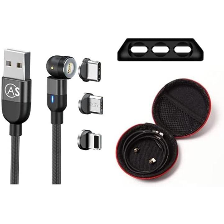 互換品540°turnケーブル 回転 マグネット 充電ケーブル 3in1 ios type C micro USB3A 高速充電 データ転送可 テレワークに ケース付き ブラック・0.5m