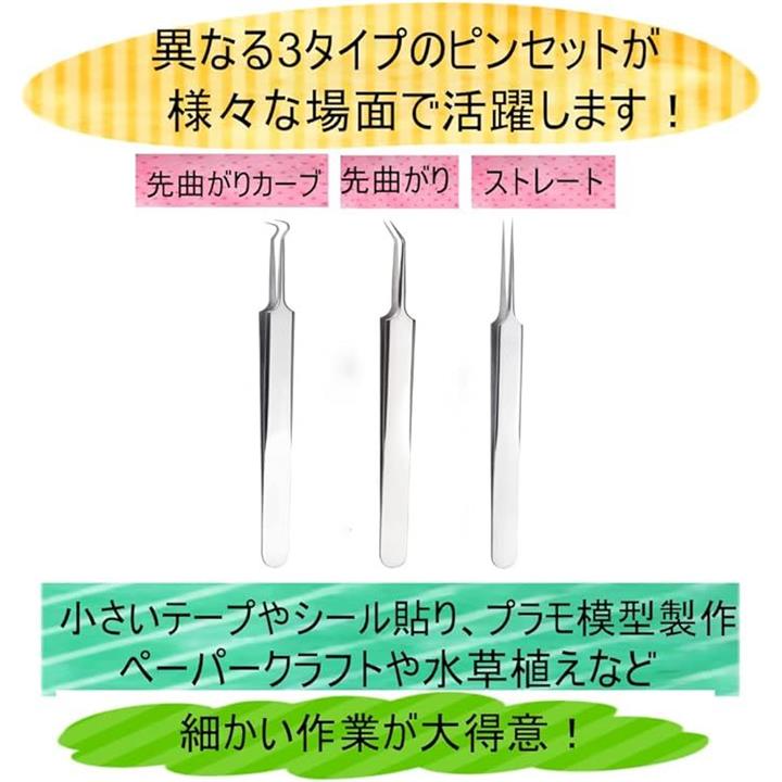 精密ピンセット 極細0.3mm マイクロピンセット プラモデル 先曲がり