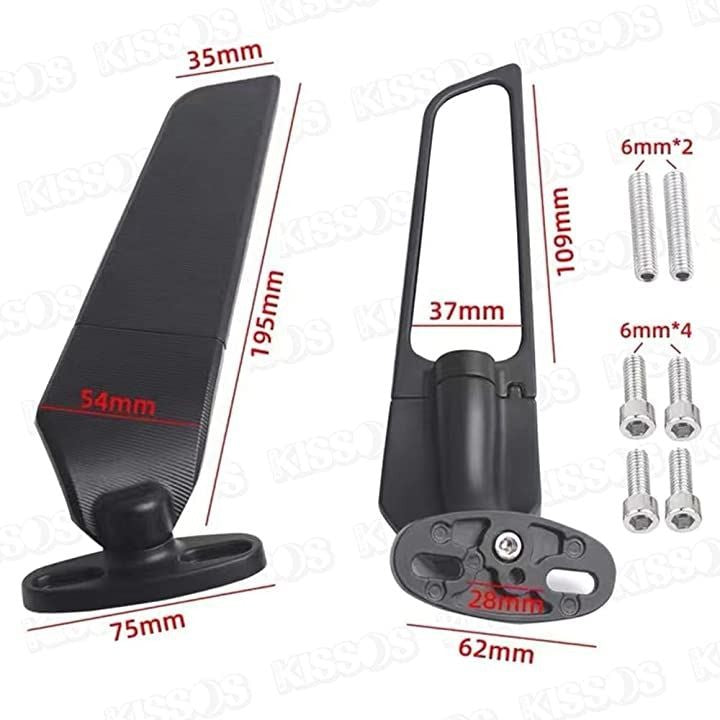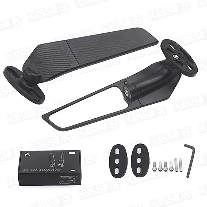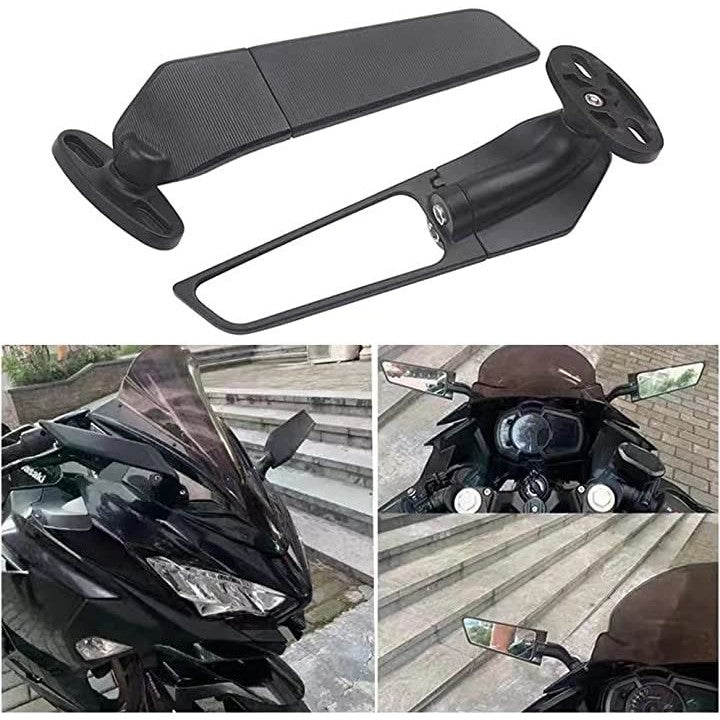 ウイングミラー バイク オートバイ YZF ZX CBR 可変 回転 カナード 汎用 ブラック 左右セット