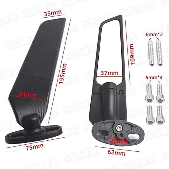互換品ウイングミラー バイク オートバイ YZF ZX CBR 可変 回転 カナード 汎用 ブラック 左右セット