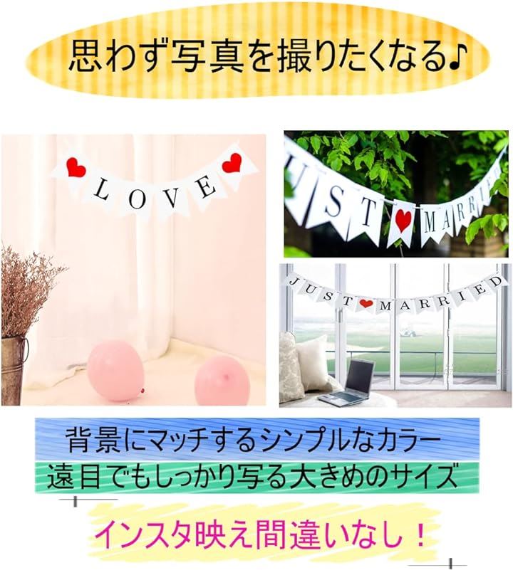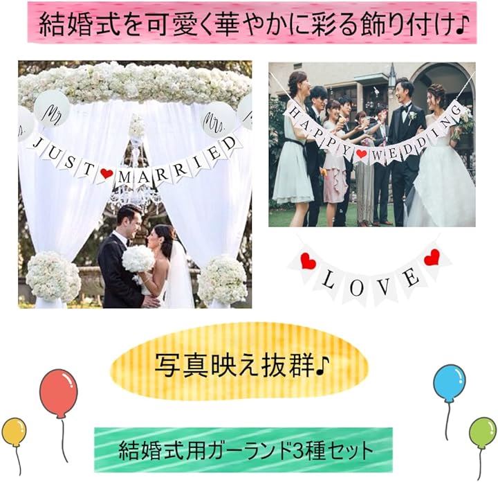 ガーランド 3種セット 結婚式 飾り付け just married グッズ HAPPY WEDDING LOVE