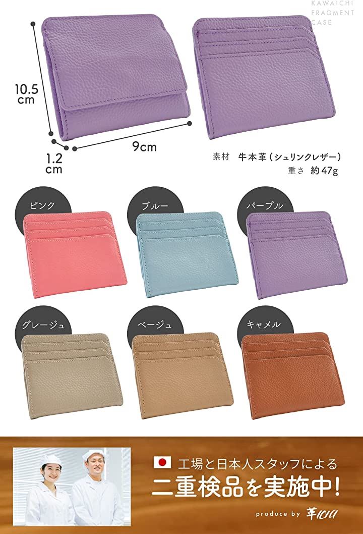 [革ICHI] フラグメントケース 小銭入れ ミニ財布 レディース 本革 ミニウォレット カードケース カード入れ(ライトパープル) |
