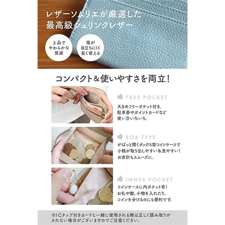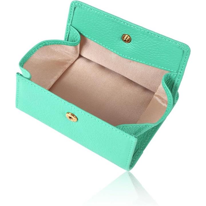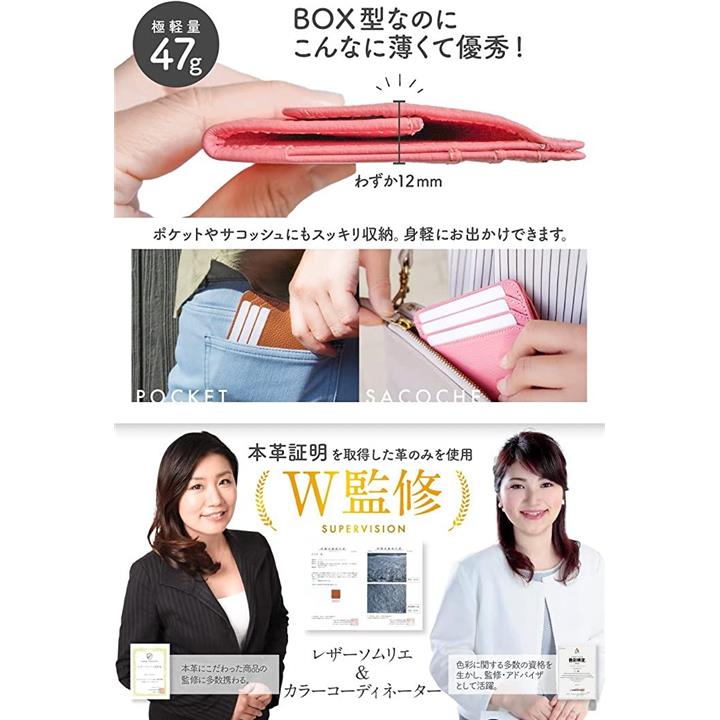 [革ICHI] コインケース レディース カード入れ付き お金を育むグリーン系 「BOX型小銭入れと外側カード3枚、フリーポケット付」 コンパクト 薄型 マルチ ミニマリスト(ライトグリーン) |
