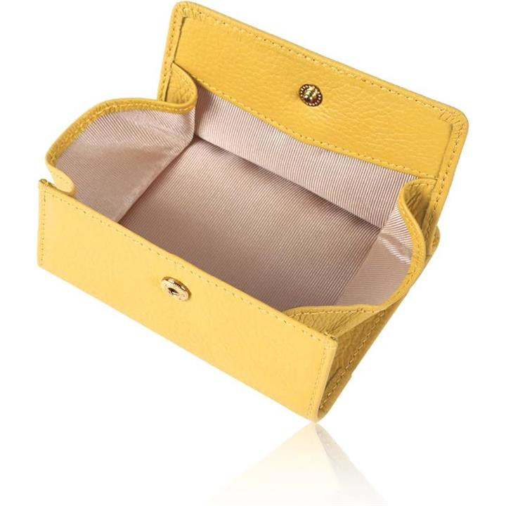 [革ICHI] コインケース レディース カード入れ付き「BOX型小銭入れと外側カード3枚、フリーポケット付」コンパクト 薄型 マルチ ミニマリスト (レモンイエロー) |