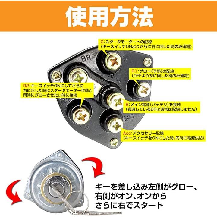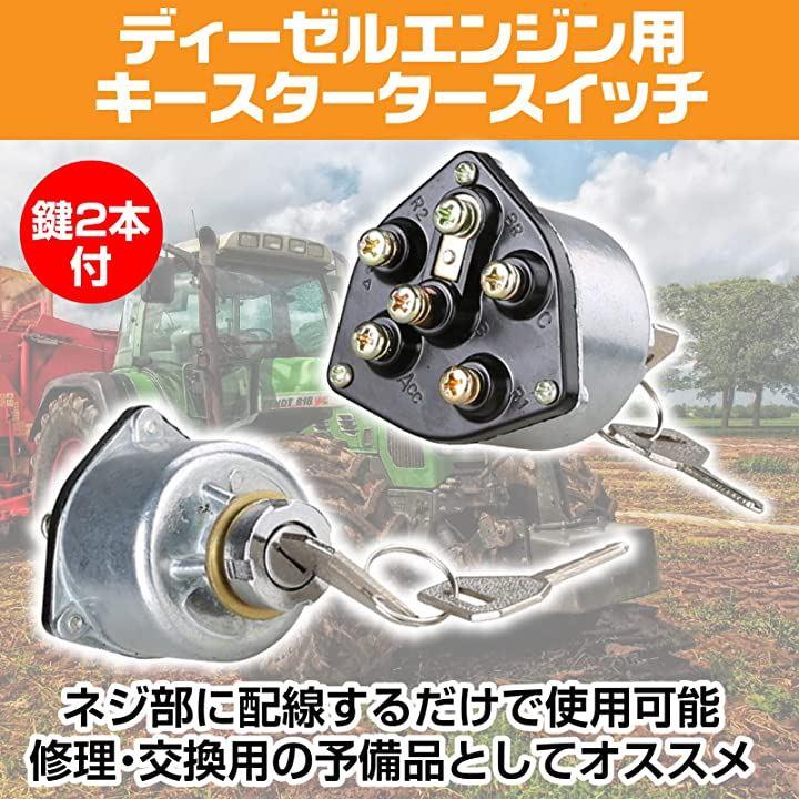 互換品 ディーゼル エンジン キースターター イグニッション スイッチ 建機 農機 船舶 コンバイン トラクター 汎用 鍵2本付