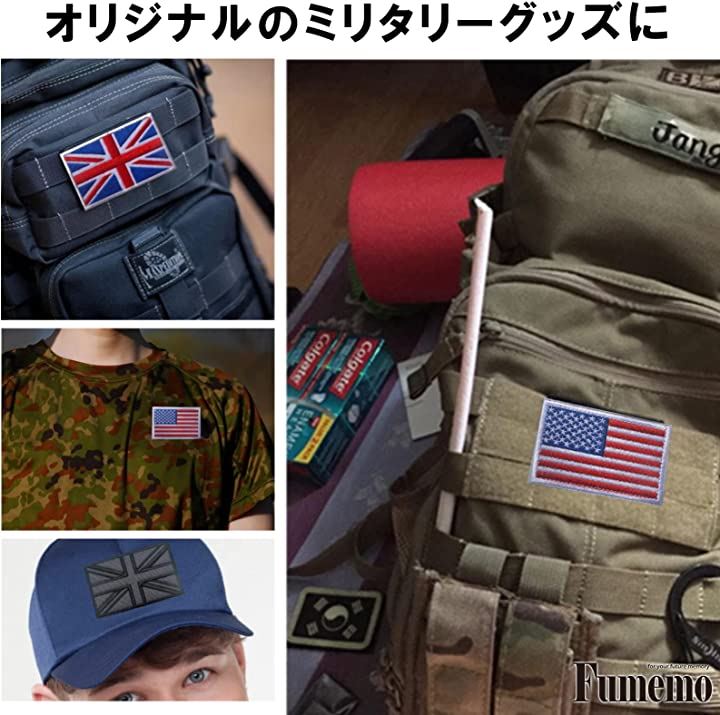 Fumemo 国 ワッペン エンブレム アップリケ 国旗 4種 8枚セット