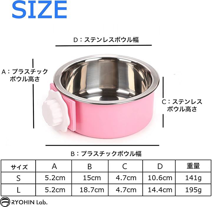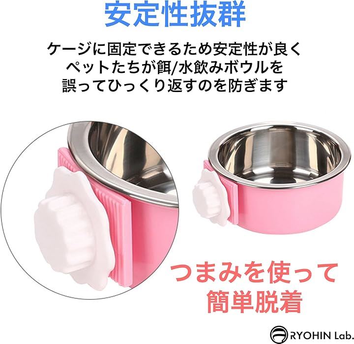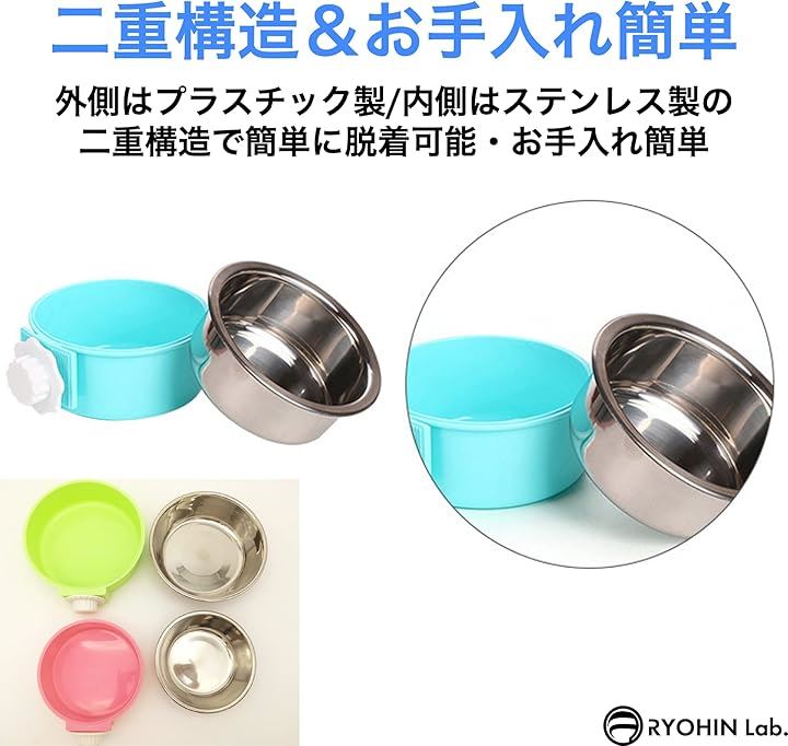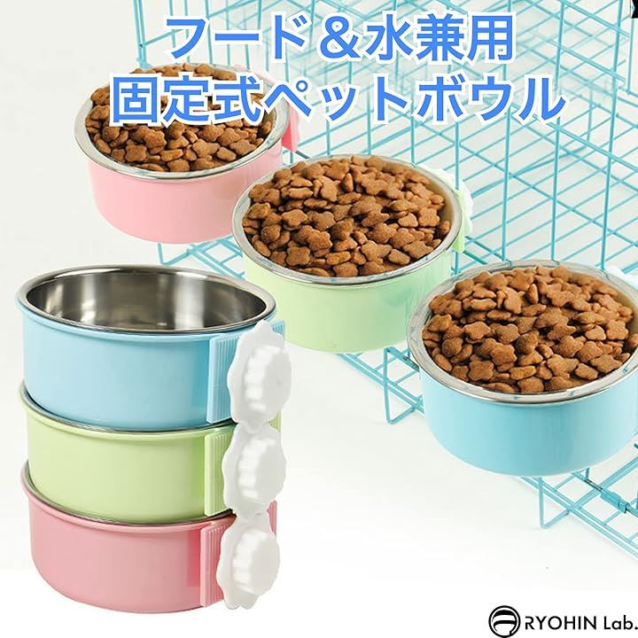 良品ラボ ペットボウル ハンガー ケージ用 犬猫用 ペット食器 餌入れ フード ウォーターボウル 小動物 ステンレス製 1個
