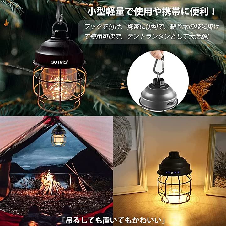 GOTUNS ledランタン レトロ風 ランタン充電式電球色 LEDランタン ledキャンプランタン 高輝度 3色切り替え (黒色) |