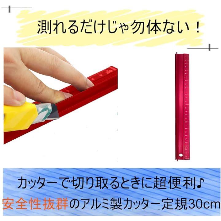 アルミ定規 カッター 30cm ものさし 物差し 滑り止め 持ち手付き