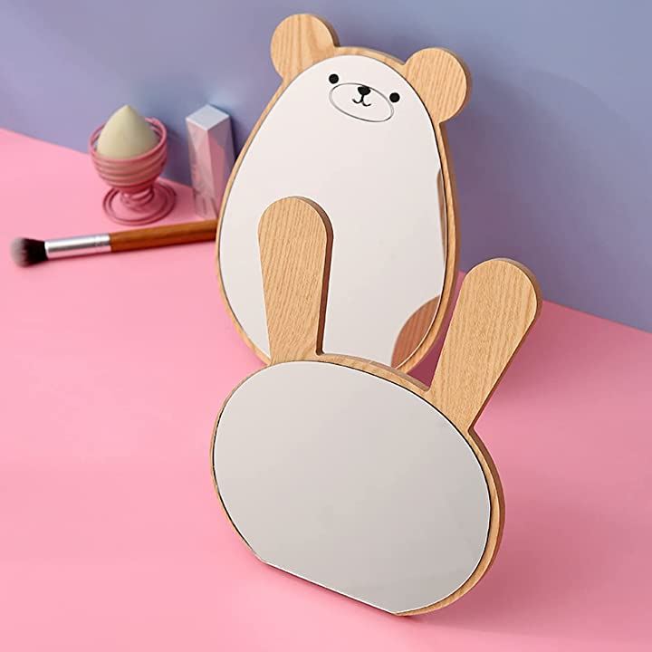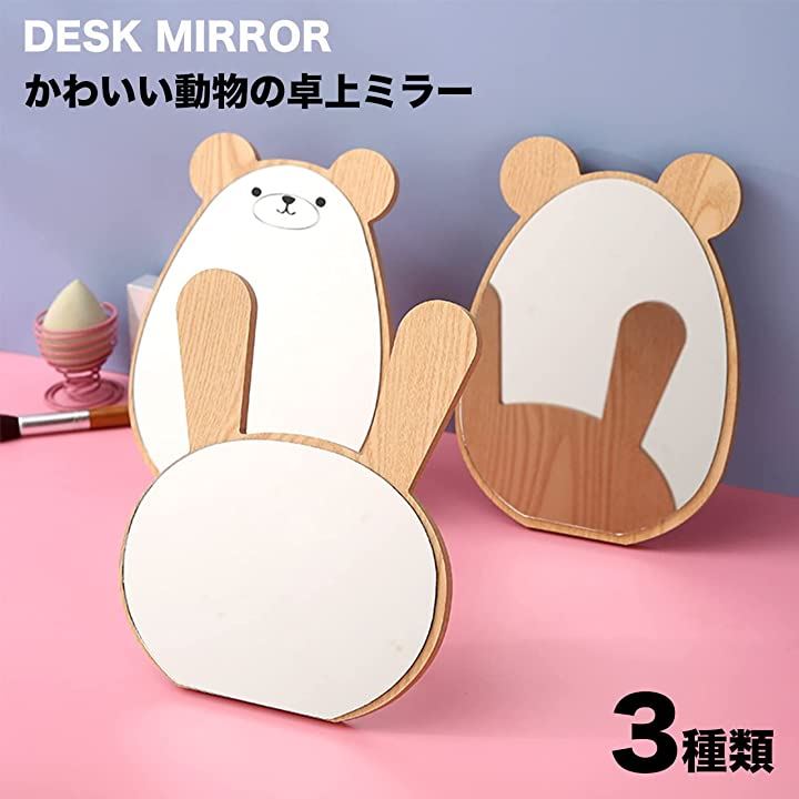 卓上 ミラー 動物 かわいい 木製 化粧鏡 スタンド メイク アップ コスメ 美容 アニマル インテリア かがみ ギフト プレゼント